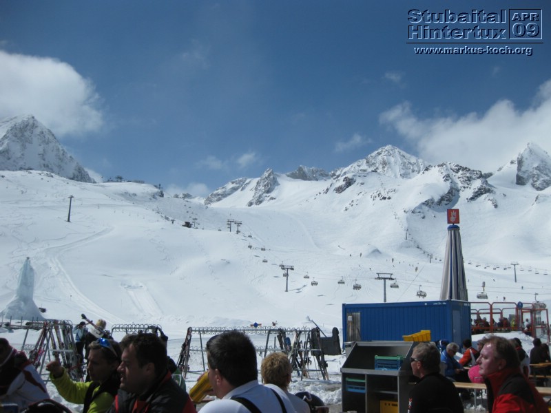 Udo, Michael und ich wollten noch unbedingt unsere Freikarten vom Stubaier Gletscher, welche wir kulanter Weise im Dez 08 für die Sturmsperre bekamen einlösen. Da ich noch eine Tageskarte in einem Gewinnspiel für den Hintertuxer Gletscher gewonnen hatte, haben wir sozusagen ein kleines Gletscherhopping veranstaltet *G*