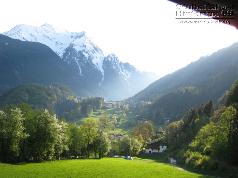 Nach diesem traumhaften Skitag machten wir uns auf den Weg ins „Tal weiter“, ans Ende vom Zillertal. Bei knapp über 20°C Außentemperatur fühlte man sich zwischen den grünen Weiden und Bäumen wie bei einem Sommerurlaub in den Alpen – nur mit dem Unterschied, dass wir Ski + Boards im Auto hatten *G*
