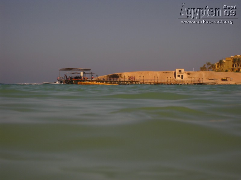 Über einen Steg konnte man auch etwas weiter draußen Schnorcheln oder ins Meer gehen. Unweit vom Strand war von einem anderen Hotel (der gleichen Kette) betrieben unsere Snack- und Getränkebar, wo es täglich wechselnde Snacks oder Pizza & Pasta gab.