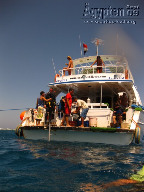 Am dritten Tag war ich mit dem Tauchcenter, welches direkt neben unserem Hotel in einer anderen Anlage war, Matthes Tauchcenter, in Abu Saile mit einem Boot für 2 Tauchgänge unterwegs. Das besondere waren neben den vielen Korallenbänken die drei Baby-Weißspitzenriffhai (s.Bilder) 🙂