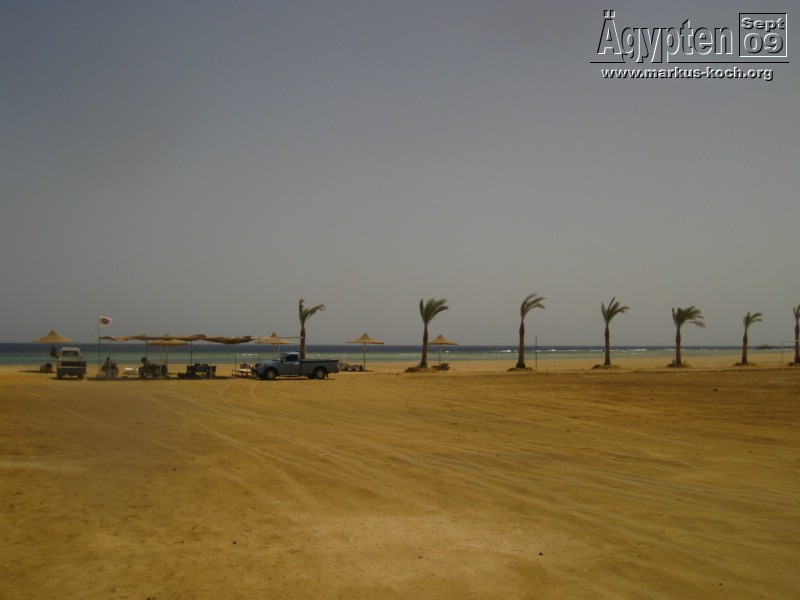 Leider war das Hotel nicht direkt am Strand, wir mussten max. 5 Minuten zum „Strand“ laufen. Es war allerdings kein Sandstrand – wie in der Hotelbeschreibung beschrieben – sondern ein festgestampfter Sand/Erde/Kies-Boden. Genügen Sonnenliegen mit Bastschirmen waren vorhanden und über eine Stelle in der Korallenbucht konnte man auch bequem ins Wasser gehen. Entweder nur zum Schwimmen oder auch zum Schnorcheln. Die beste Sicht hatte man morgens, da nachmittags das Meer schon etwas aufgewühlt war.