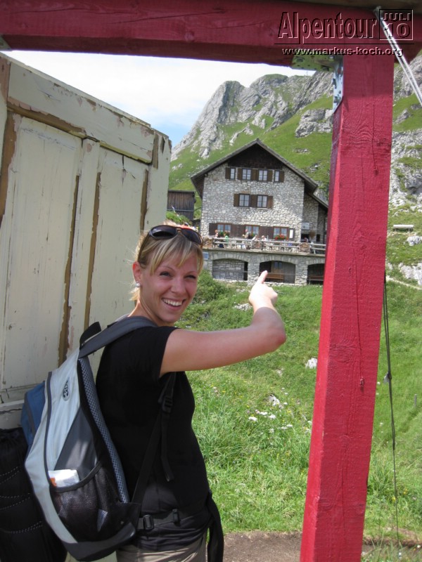 Nach dem Frühstück wartet nun der Aggenstein (1.986 m) auf uns. Das Auto stellten wir sicher an der Breitenberg-Bahn ab. Rucksack auf, Wanderschuhe geschnürt und aufi geht’s! Über die Reichenbach-Klamm und dem Bösen Tritt ging es in 3 Stunden auf die Bad Kissinger Hütte. Diese liegt unterhalb des Gipfels auf 1.792 m. Dort angekommen bezogen wir unser Nachtquartier. Ein kleines Zweibettzimmer mit Blick auf die Tannheimer Berge. Nach einer kleinen Stärkung stürmten wir den Gipfel des Aggensteins.