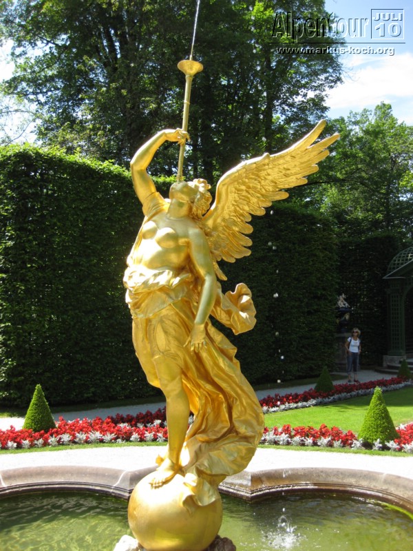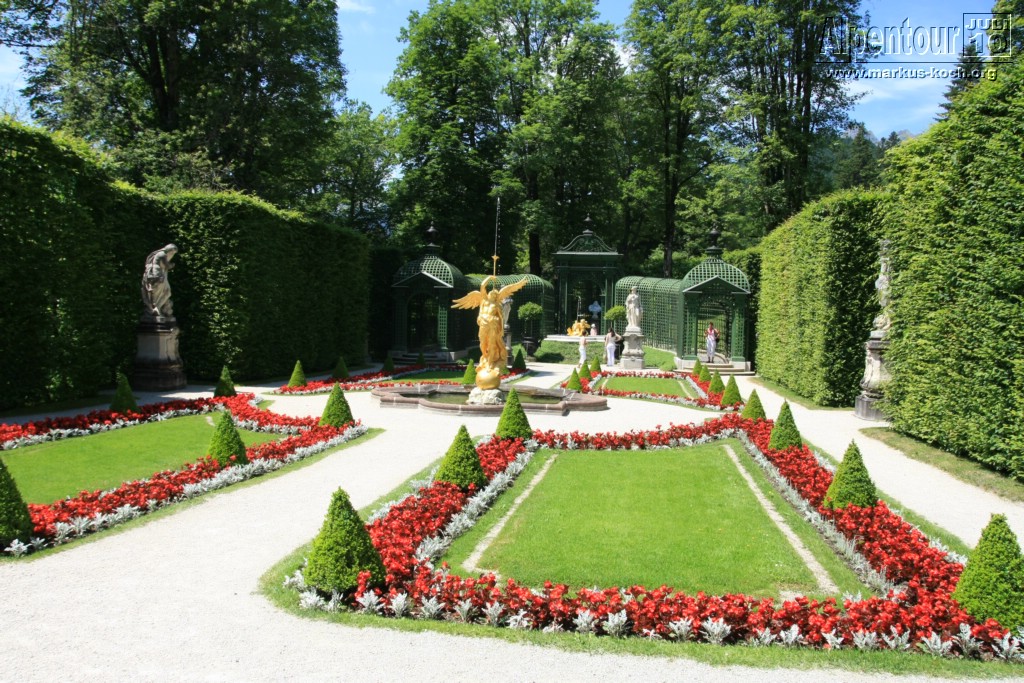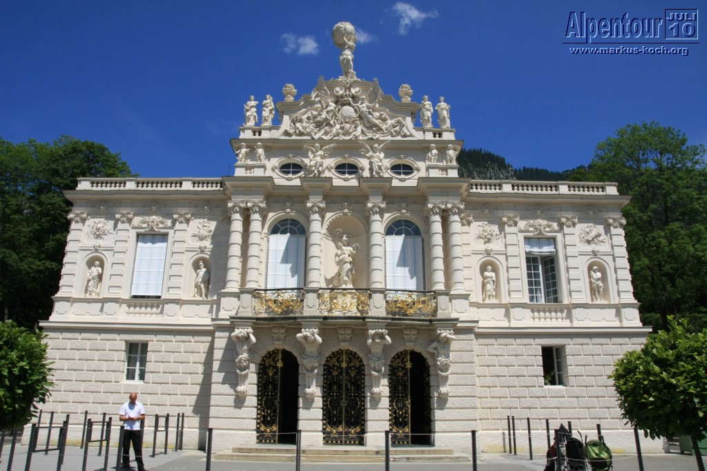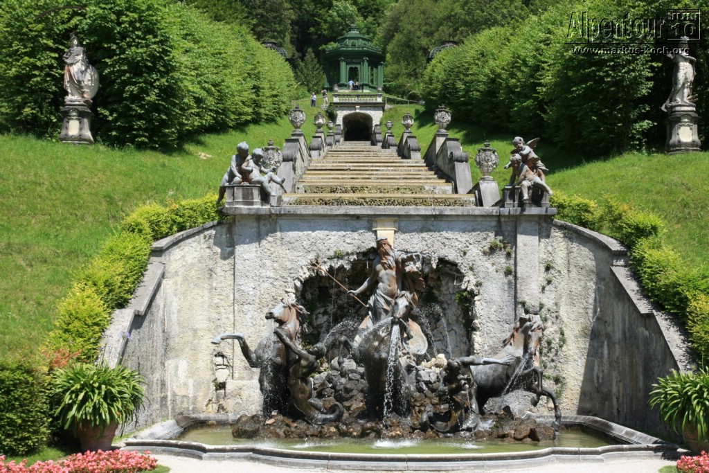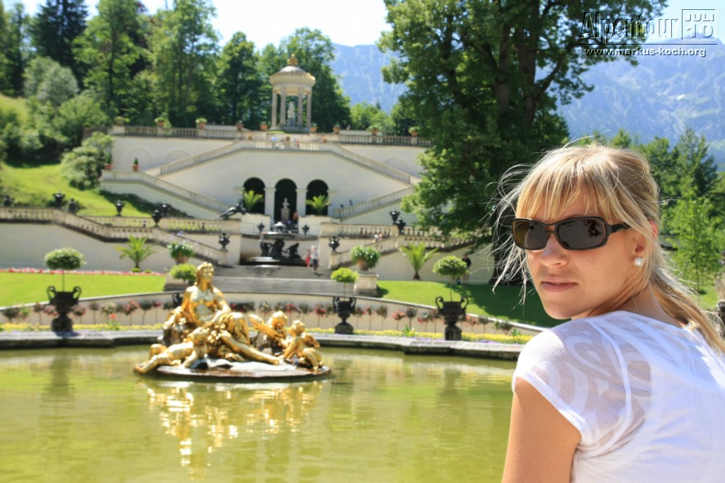Unser Weg führte uns nun mit dem Auto über Pfronten, Reutte über den fantastischen Plansee nach Linderhof. Durch den Schlosspark gingen wir zum Schloss mit der Wasserparterre und den Terrassengärten. Wieder einmal auf den Spuren Ludwig II.