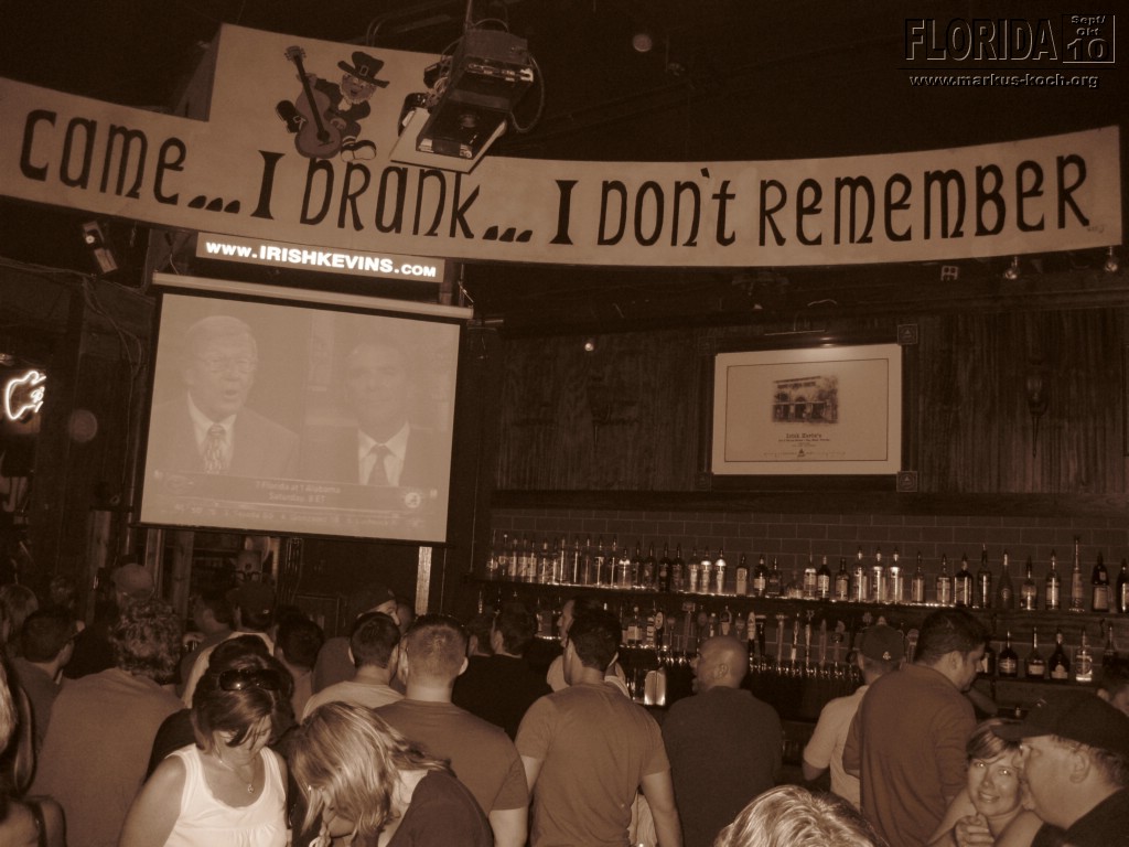 Zum Abendessen sind wir (alle 7) in ein Wendys Burger Laden gefahren, erschien uns am einfachsten, schnellsten und günstigsten. Direkt im Anschluss tranken wir 2-3 Budweiser im südlichsten Irish Pub der USA. Kurz davor trafen wir auch die beiden Tiroler Bernhard & Christine, die uns irgendwie seit Homestead „begleiten“. Die beiden waren auch bei der Fun-Tour auf dem Katamaran dabei. Gruß an dieser Stelle an die Beiden!