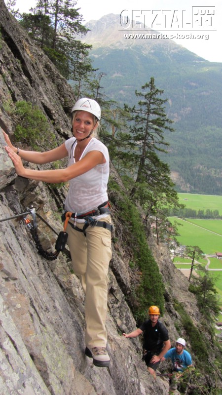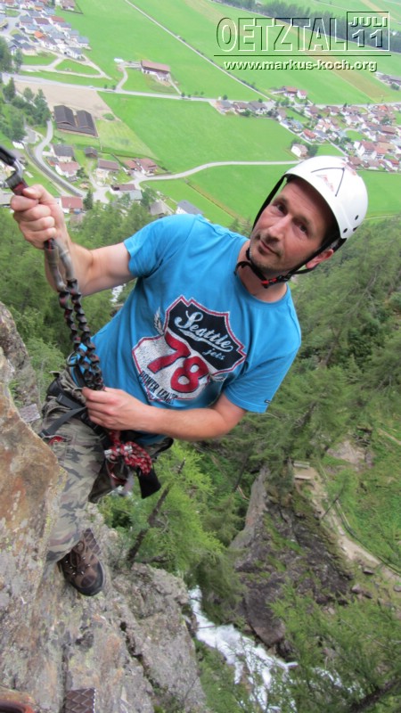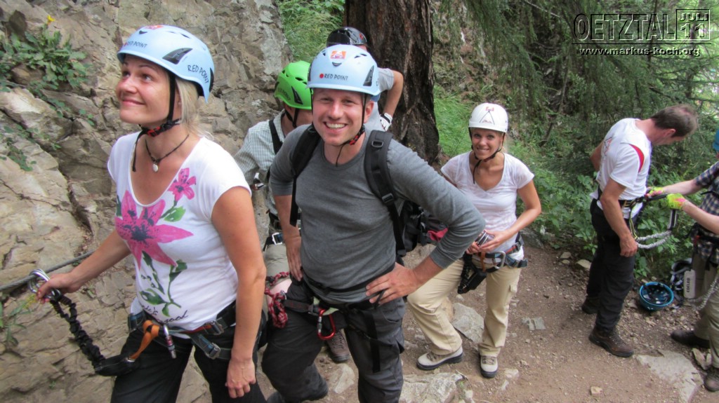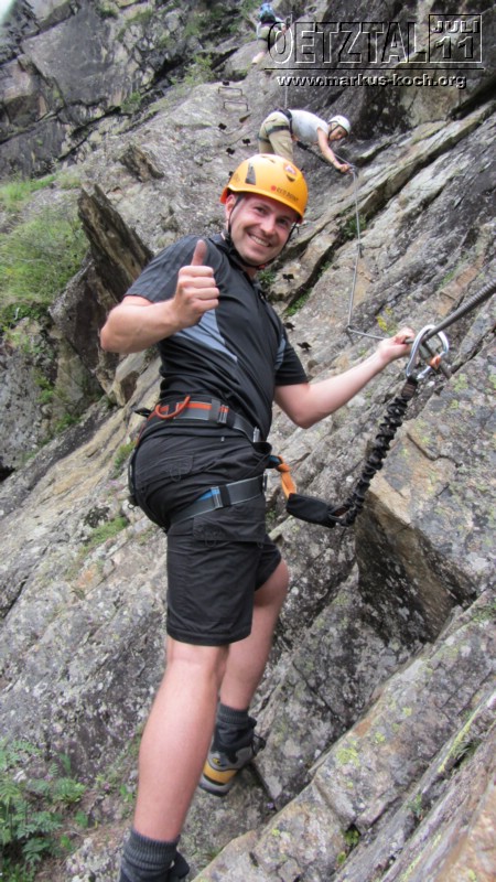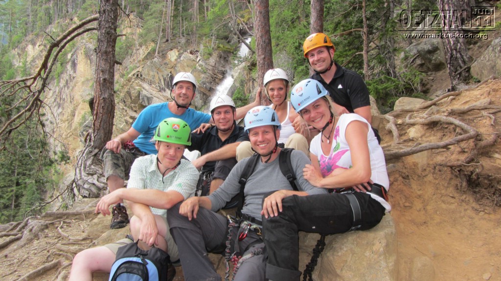 Nachmittags haben sich dann schon fast entkräftet Volker, Christian&Janet, Udo, Michael, Marie&Ich auf einen Klettersteig am Lehner Wasserfall getraut.War schon der Hammer so am Abgrund des Todes mit einem Sicherungsseil an einem Stahlseil im Felsen gesichert zu sein!