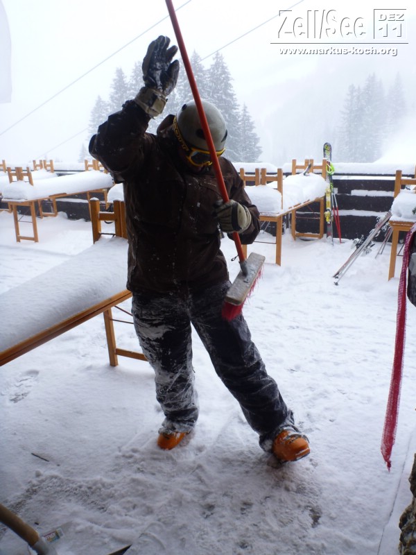 Am Sonntag morgen nach erneuten Schneefall waren wir dann fast die ersten auf der Piste der Schmittenhöhe. Hinten bei der 6er Abfahrt konnten wir noch einige Powderstellen finden um uns so den Vormittag auszupow(d)ern *G*