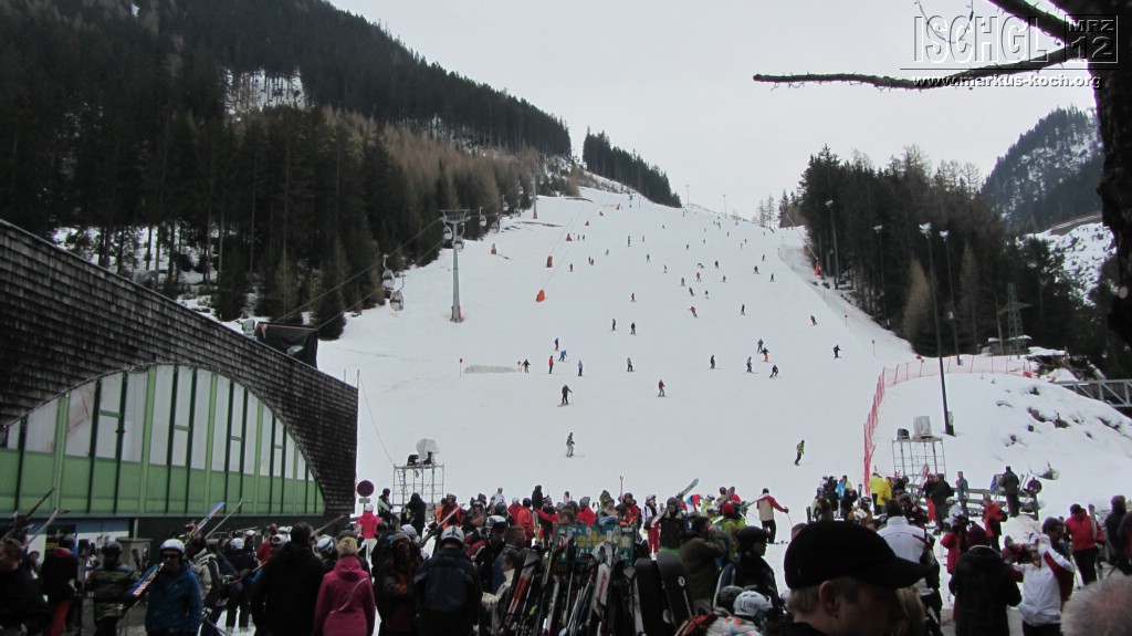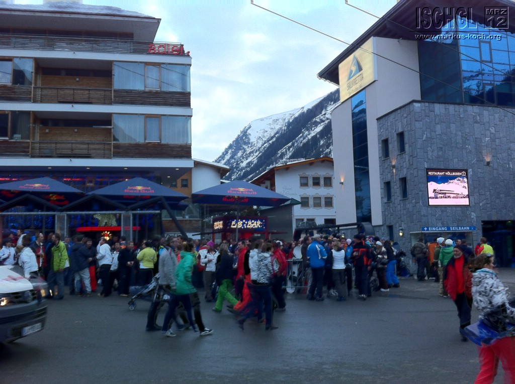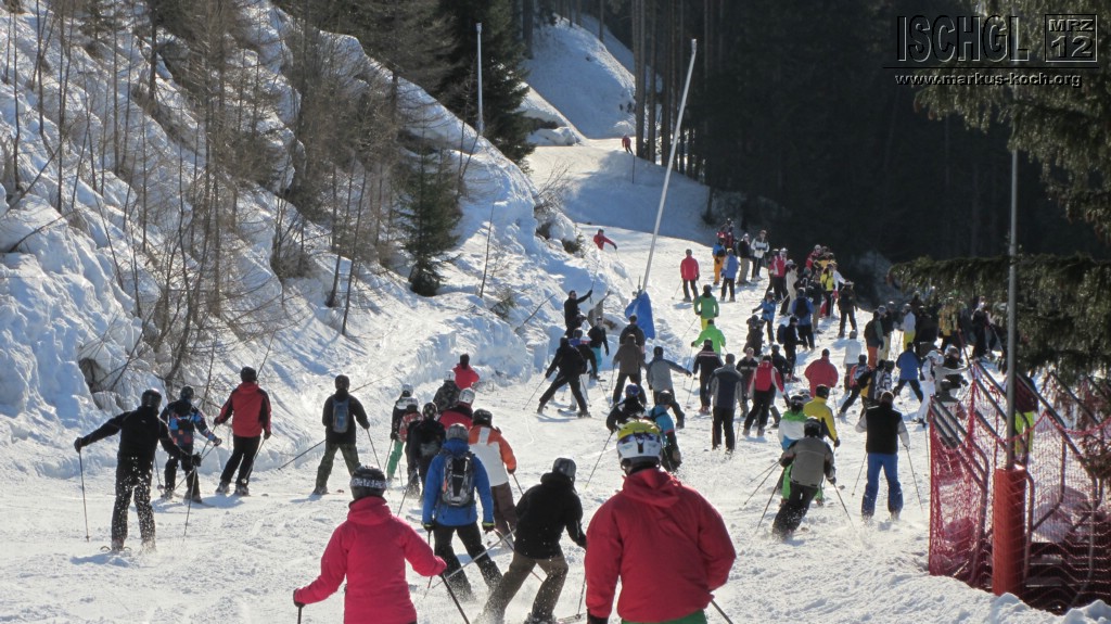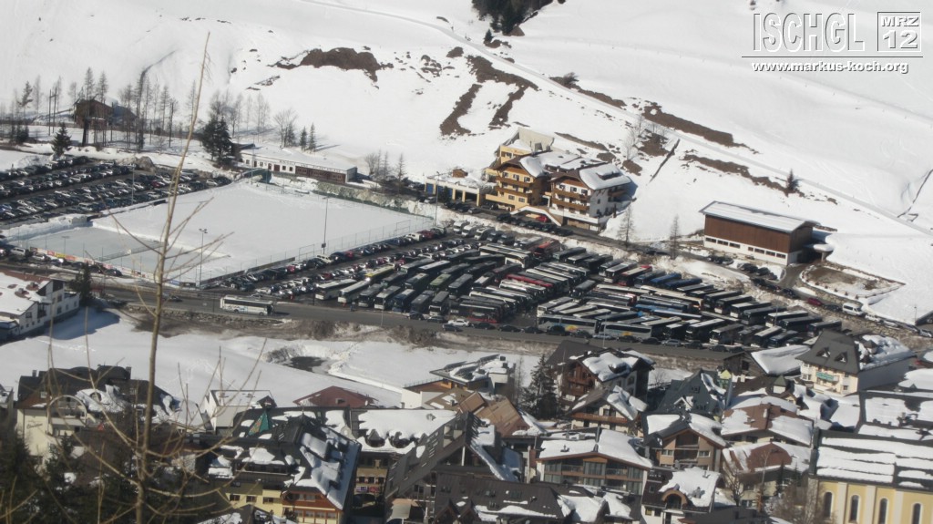 Am Samstag war in Ischgl die höchste Kapazität von 22.000 Besuchern erreicht. Im Skigebiet hat es sich trotz der Menge ganz gut verteilt, außer halt bei den Hauptpunkten. An Apres-Ski war fast nicht zu denken, alles mehr als Gequetschte voll und hat somit keinen Spaß gemacht! Auf den Bildern sieht man die Busse, die diese Menge an Massen heranbringt. An den übrigen Tagen war nicht annähernd so viel los bzw. genau richtig.