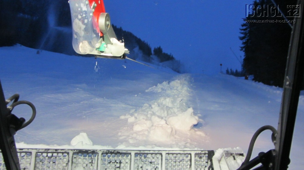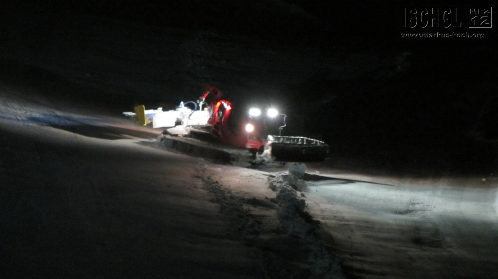 Am Montag durfte ich meinen Facebook-Gewinn einlösen: 3 Stunden war ich mit einem Pistenbully auf Piste 5 und 1 unterwegs. War sehr interessant, wie alles von statten geht, z.B. bei steileren Hängen sich die Raupen über eine Winde (600-1000 m Seil) an Stahlpfosten einhängen, damit sie die Piste relativ schnell fertig bekommen. Fast 500 PS hatte die Maschine mit der ich unterwegs war. Selbst fahren durfte ich jedoch leider aus Sicherheitsgründen nicht. Bedient wird die Maschine über ein Lenkrad und einen Joystick. Gas wird wie beim Auto mit einem Pedal gegeben. Nach den fast 3 Stunden wars dann aber als „Zuschauer“ doch eher langweilig.