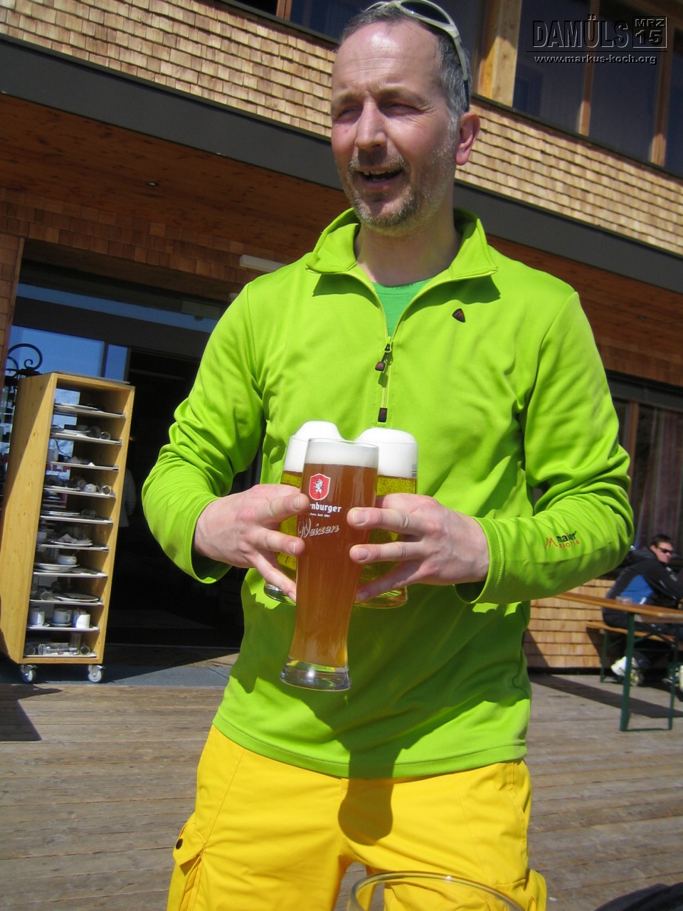 Samstag mussten wir aufgrund des Wetters (Schneefall, keine Sicht) schon zur Mittagszeit mit Skifahren aufhören, aber es gab für uns ein Platz an der Theke unserer Unterkunft für das ein oder andere Hopfengetränk. Zu empfehlen ist auch der leckere Kaiserschmarn.