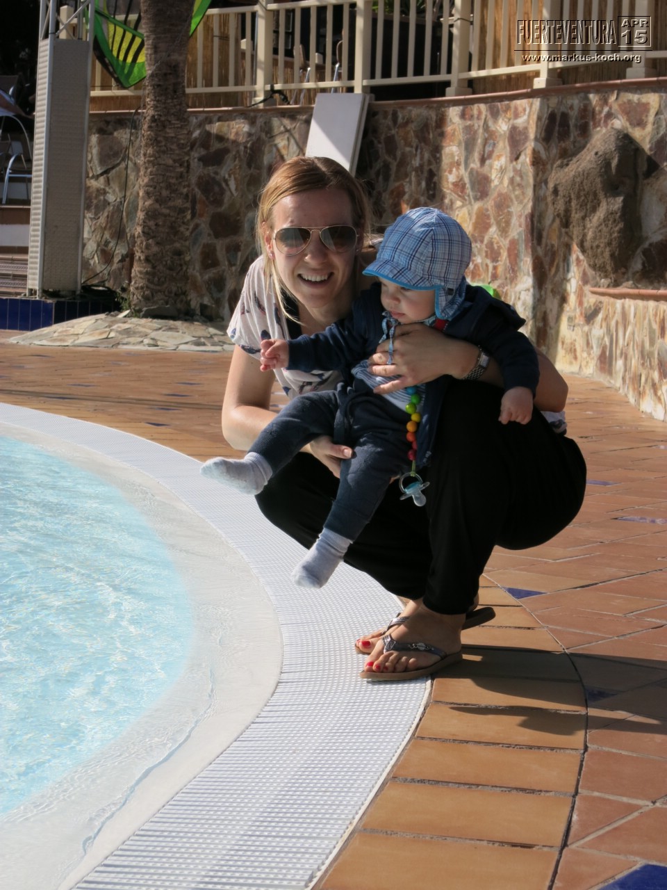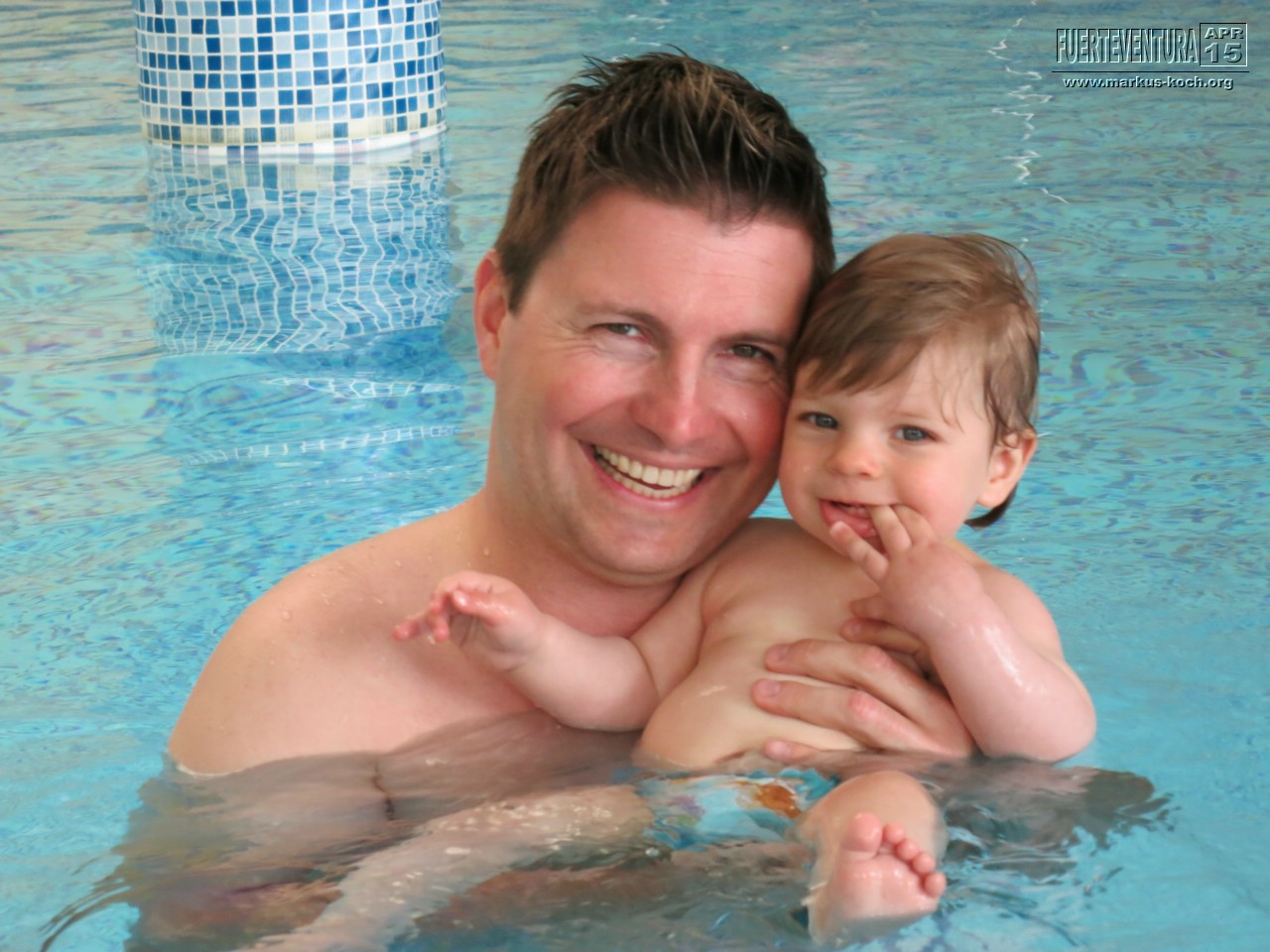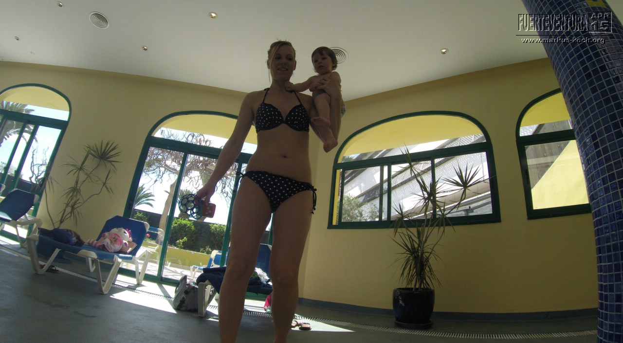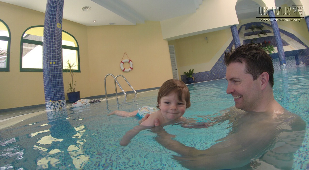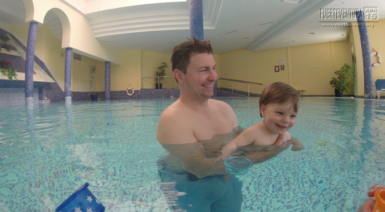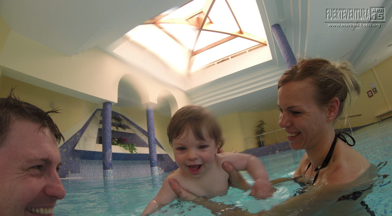 Im beheizten Pool des Wellness Centers konnten wir mit Luca ins 26-28°C beheizte Wasser zum Planschen. Es ist zwar über 1 m tief, aber wir haben ihn immer schön gehalten.