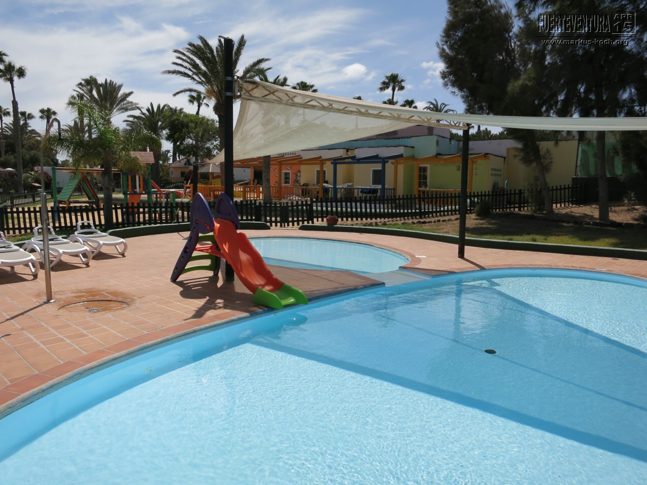 Anlage: Wunderschön! Ganz toll ist alles angelegt, viel grün, Palmen, Pflanzen, Rasen. Total klasse war auch die Barrierefreiheit für Kinderwägen. Egal ob in der Anlage, im Restaurant, am Pool oder zum Meer hinunter, überall kam man ohne Problem hin. Die Anlage ist etwas auf einem Felsen erhöht, von dem man aber leicht hinunter zur Strandbar und zum langen Sandstrand von Jandia kommt.