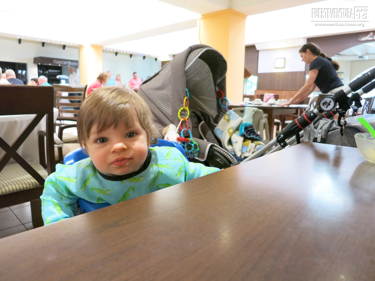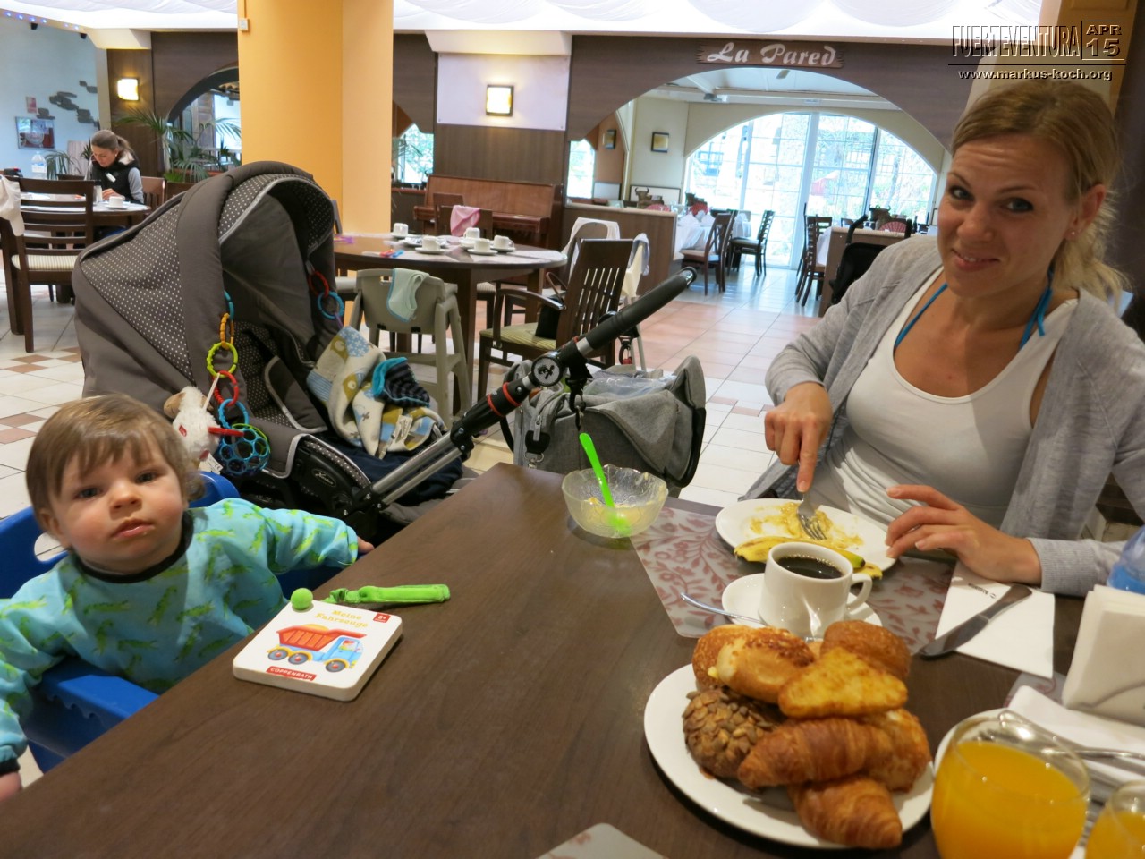 Hinflug: Davor hatten wir etwas Bammel, da man ja weiß, wie Babys in Flugzeugen sein können. Vom Check-In bis zum Club war Luca recht brav. Der Flug von 4,5 Stunden mit Junior auf dem Schoß gingen ohne Schwierigkeiten rum. Er turnte auf uns herum, war aber immer leise dabei. Die Boeing 757 von Condor hatte auch enorm viel Beinfreiheit, womit wir gar nicht gerechnet haben. Im Reisebus dann zum Club war deutlich weniger Platz und 2 Std. Fahrt – da andere Hotels noch angefahren wurden – waren dann doch irgendwann nervig.