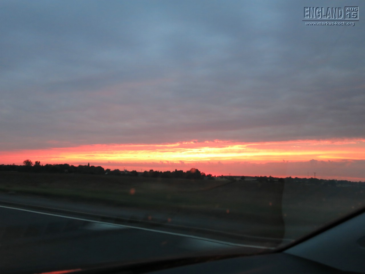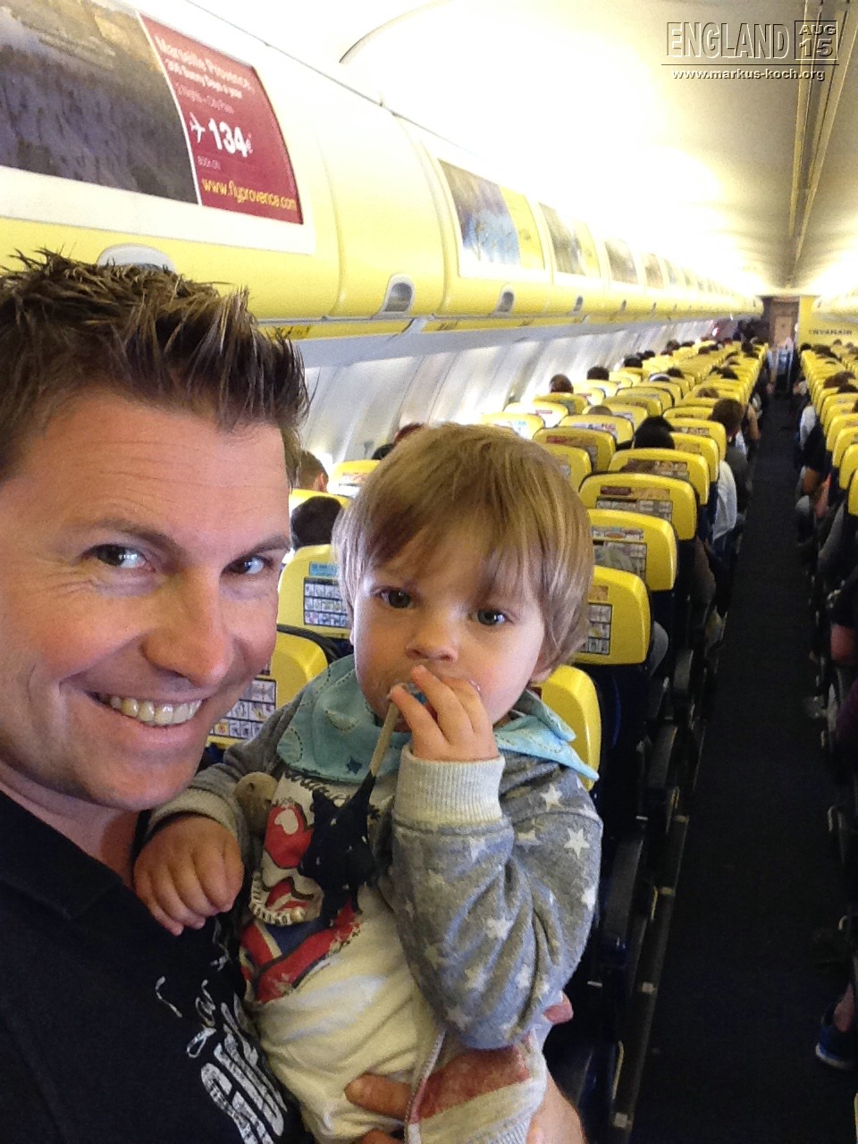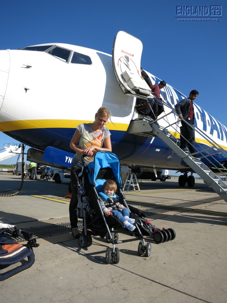 Spät abends um 22:35 Uhr war die Abflugzeit von Hahn nach Stansted. Etwas nervig war der einsetzende Dauerregen – der das Flugfeld auf dem Weg zum Flieger in einen See mit 3-4 cm Höhe versetzt hat. Wir bestiegen relativ Nass und auch mit nassen Füßen den Flieger 🙁