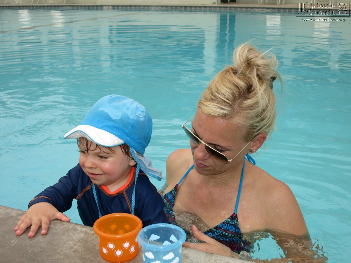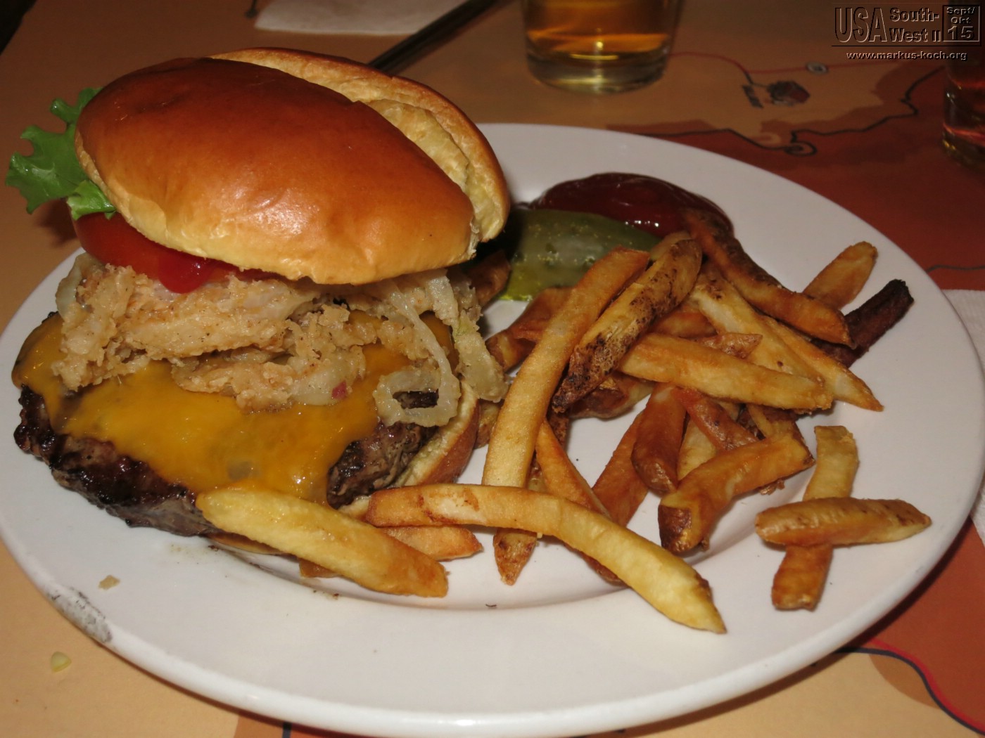 Nachmittags verbrachten wir die Zeit im Schatten am und im Pool des RV Ranch Parks und einerm leckeren Burger Abendessen im Saloon.