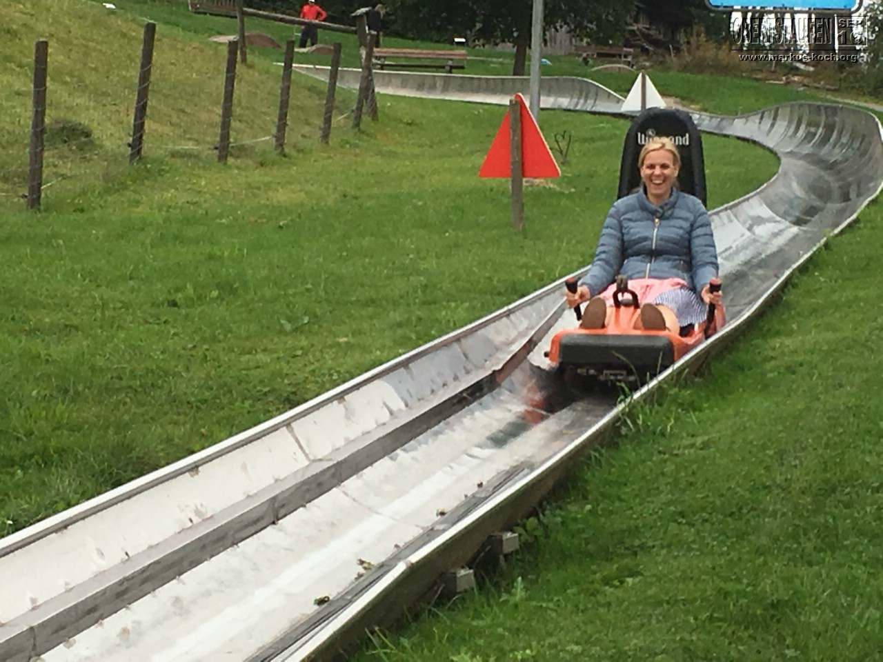 Kaum sind wir aufgebrochen, zogen richtig dunkle Wolken auf, aber es regnete nicht. Auf dem Heimweg war die „Hündle-Bahn“, mit der wir auf den Berg hoch sind und noch etwas spazieren liefen. Unten konnten wir dann noch – weil wir die Oberstaufen-Plus Karte hatten – auch umsonst eine Rodelbahn fahren.