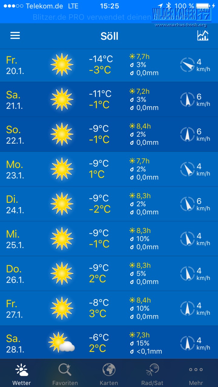 SA-Mo: Wetter: Sonne & kalt, ca. -13 bis +5 °C