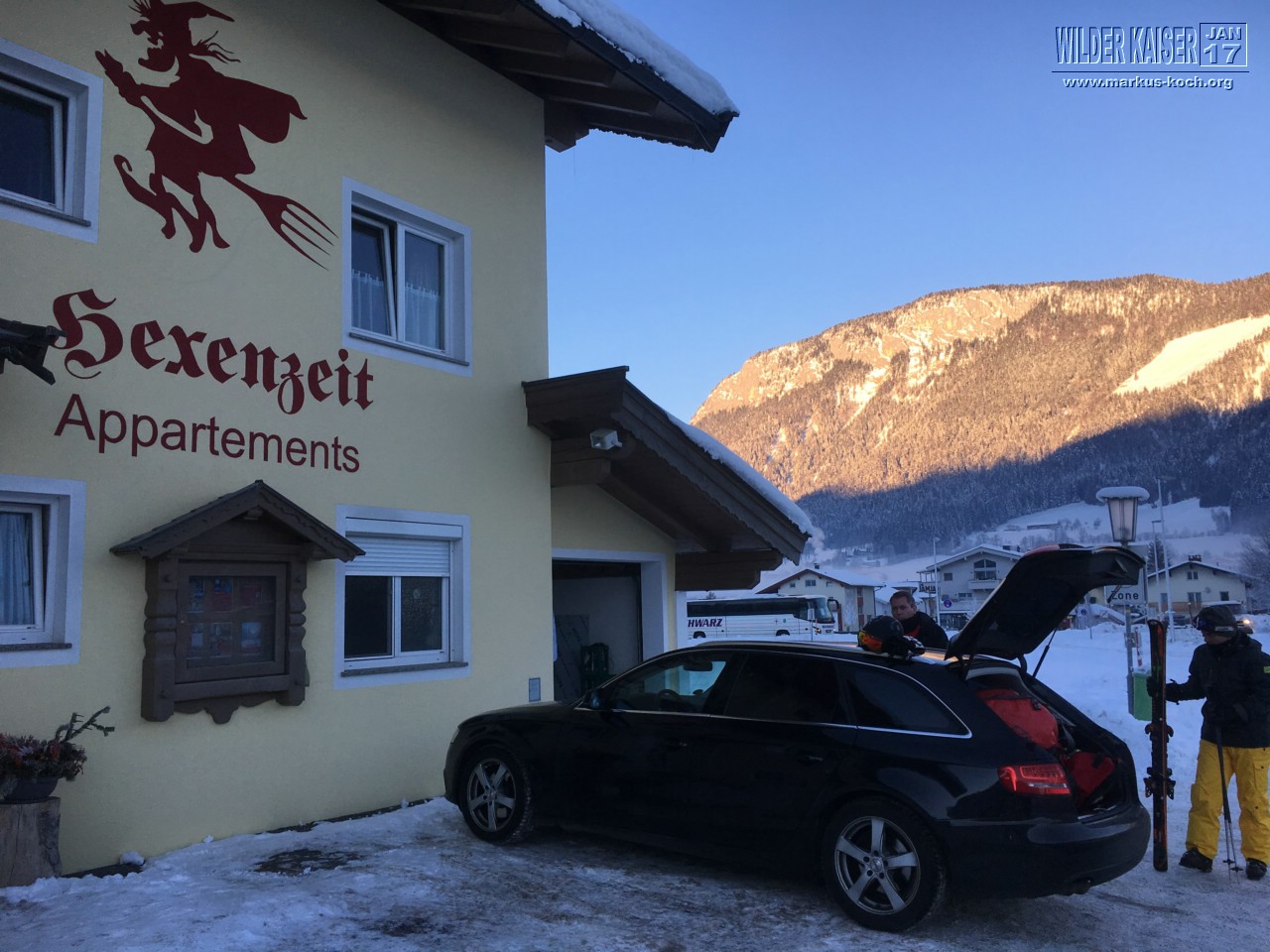Nach 4 h Autofahrt waren wir an unserem Apartment Hexenzeit in Söll. Leider konnten wir erst am Nachmittag rein, sodass wir uns in der zugehörigen Hexenalm umgezogen haben.