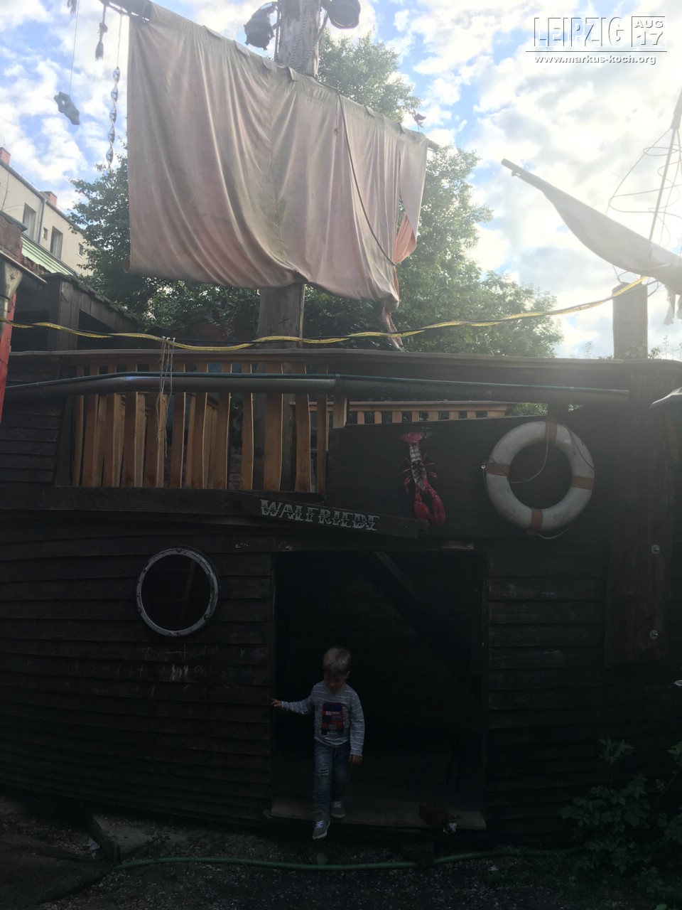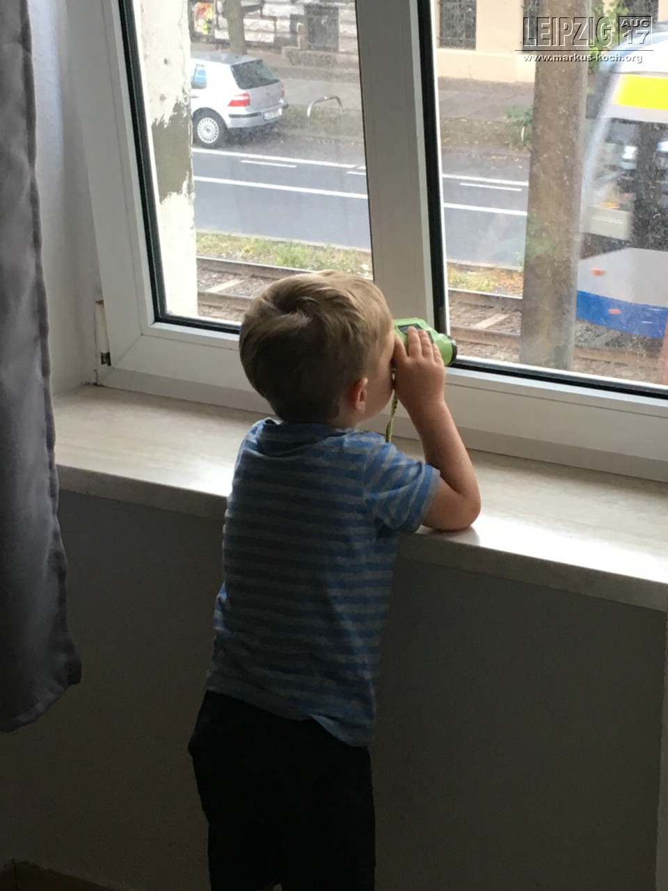 Nach einem Rundgang in der Innenstadt fuhren wir mit der Straßenbahn zur Ferienwohnung auf der viel befahrenen und mit vielen Kneipen bestückten Karl-Liebknecht-Str. Hört sich jetzt schlimmer an, als es tatsächlich war. Luca liebte es ständig zum Fenster zu rennen und die minütlich vorbeifahrenden Straßenbahn zuzuschauen *lach*.