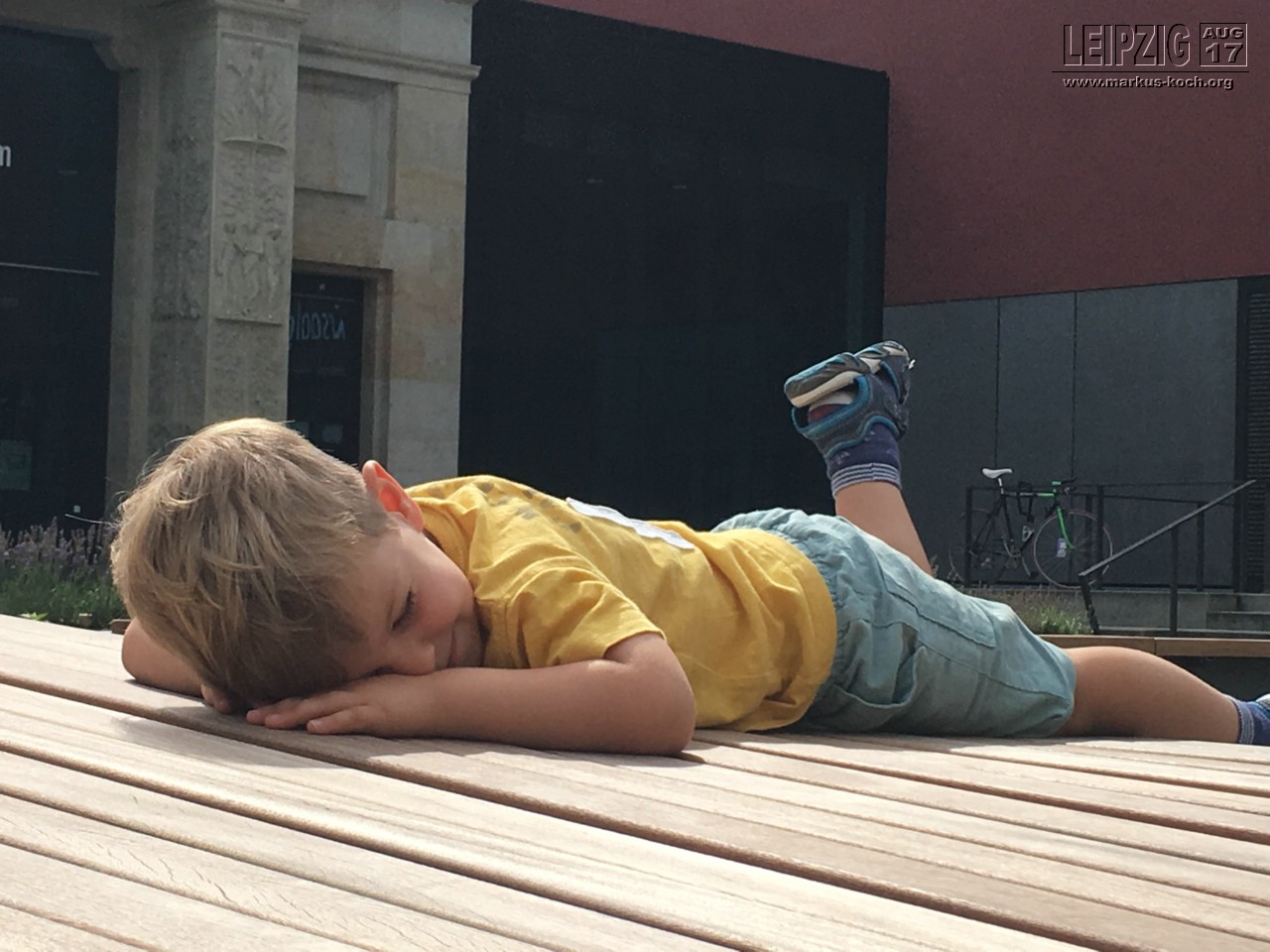 Es wurde Zeit… ein Besuch bei meiner seit vielen Jahren in Leipzig lebenden Schwester. Wie sollte es anders sein, Luca wollte unbedingt mit dem Zug fahren. Das stellte sich wiedermal auch als sehr gechillt raus. Die 4 h Fahrt mit 1x umsteigen vergingen wie im „Flug“ (..in der „Bahn“) ;).