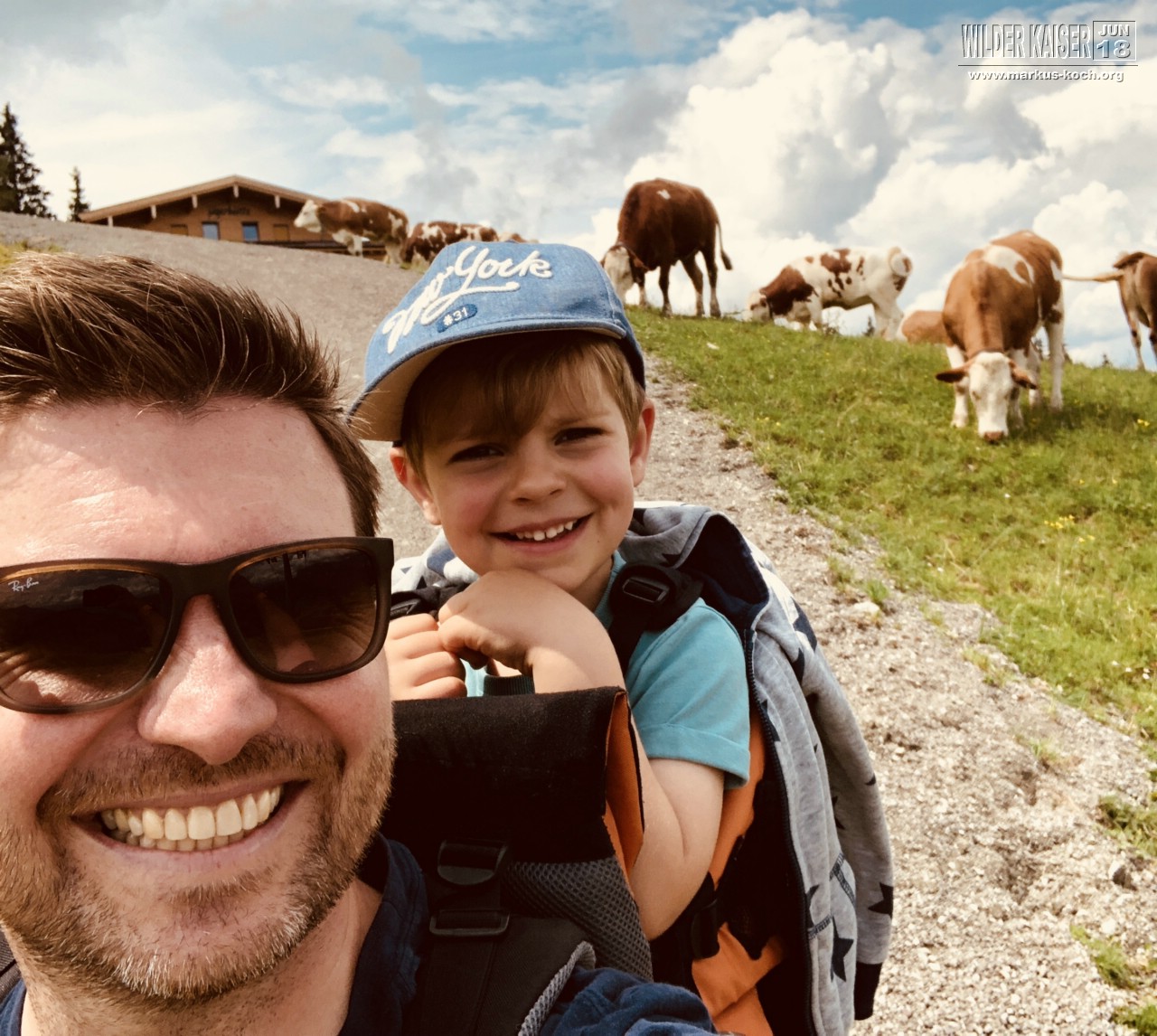 Gudrun, Marie, Luca & ich wollten eigentlich nach dem Frühstück nach Hoch-Söll runter wandern, verliefen uns allerdings, sodass wir an der Mittelstation Hopfgarten raus kamen. So mussten wir nochmal hoch zur Hohen Salve und auf der anderen Seite runter zur Mittelstation Hoch-Söll.