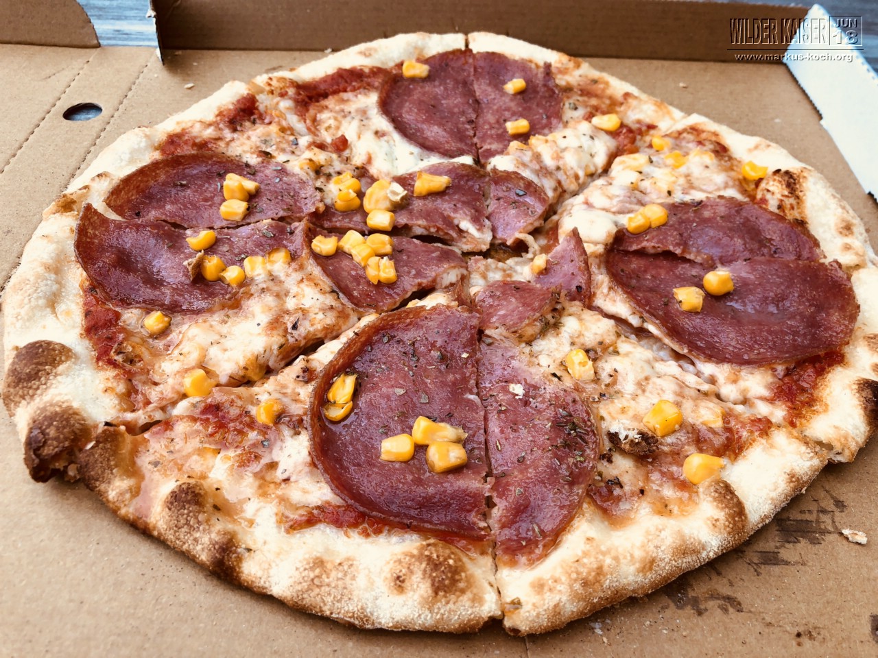 Pizza gab es als Abendessen, die wir im Restaurant „Auf da Mühle“ abgeholt hatten.