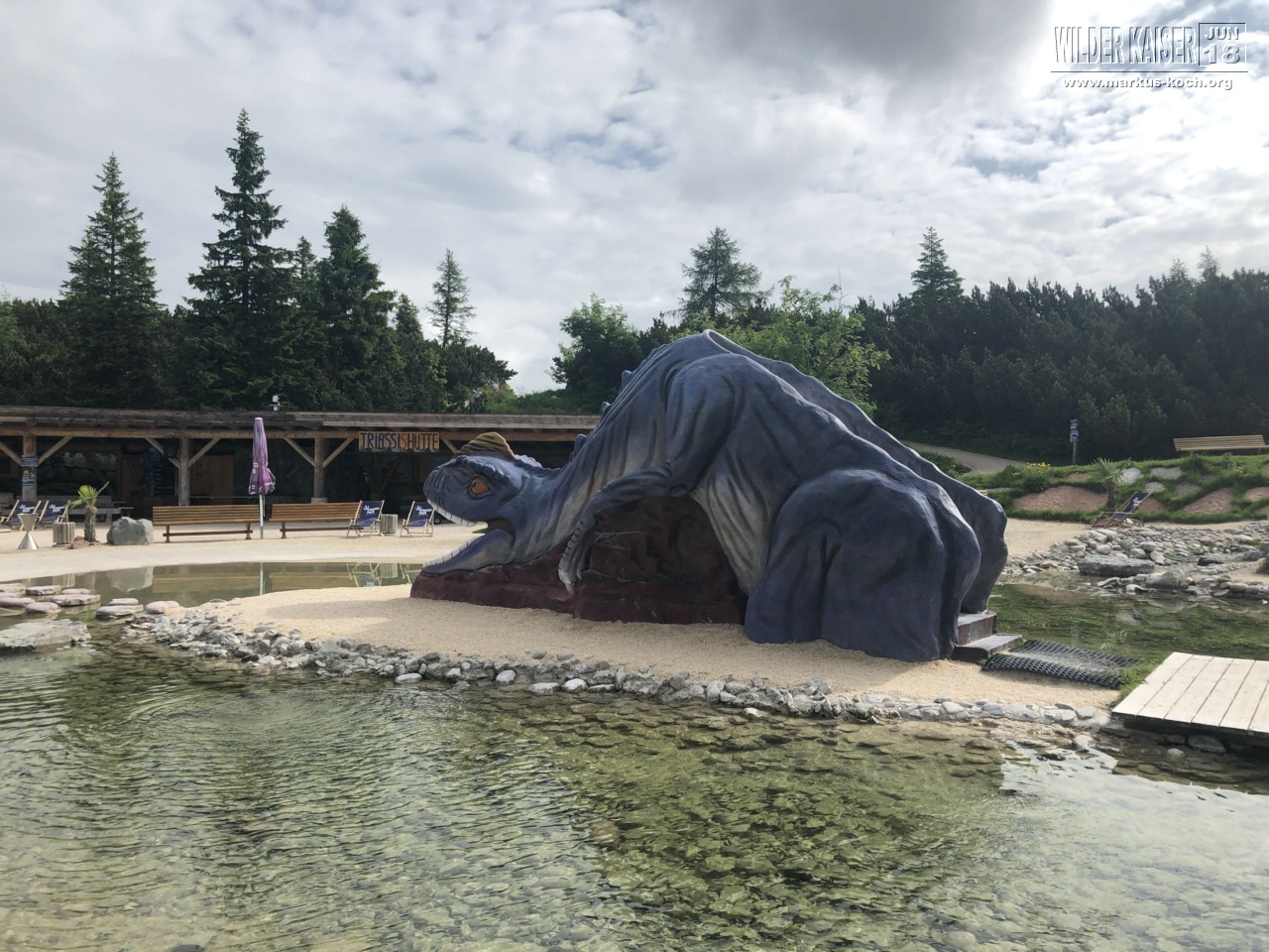 Marie & ich fuhren zur Steinplatte, wo wir einen Klettersteig absolvierten. Dort gibt es einen Art Jurassic-Park für die Kleinen. Nach kurzen Abstieg (25 m Gamssteig), ging es zum Einstieg des „s’Schuastas Gangl“ Klettersteig. Für Marie war es etwas schwieriger, da ihr für diesen Klettersteig einfach ein paar Zentimeter Körpergröße gefehlt hatten. Insgesamt war es meiner Meinung nach aber ein guter Klettersteig.