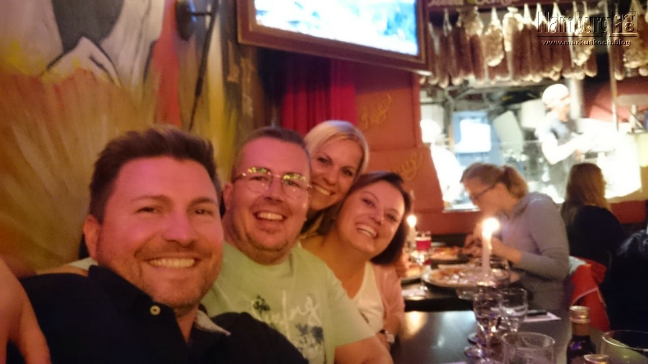 Als Überraschung waren Achim, Dani und sein Ex-Kollege auch dort. Dani feiert an diesem Tag ihren 40. Geburtstag und war ebenso in HH, da Achim seinen neuen Job bei Costa Kreuzfahrten anfing (Zentrale: in HH) und sie beide den Tag feiern wollten 😉