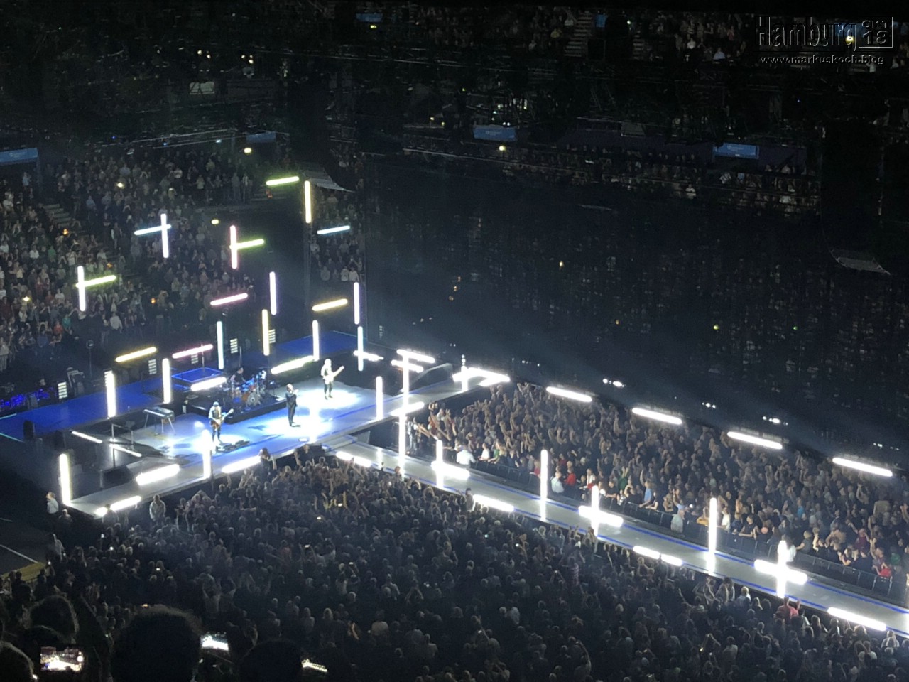 Am Abend folgte (wieder zu viert) der eigentliche Grund für die HH Reise: das U2 Konzert. Die Bühne war echt mega und der Sound auch. Allerdings hätten wir uns ein klein wenig mehr erwartet. Es war nicht schlecht, aber wir hätten uns deutlich mehr Power von Bono gewünscht. Vielleicht auch mit ein paar mehr alten Liedern.