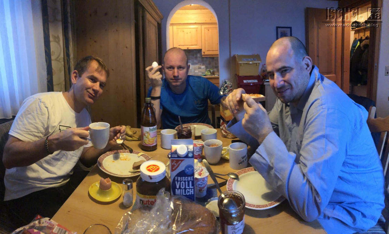 Das Wetter versprach einen weiteren Tag feinstes Skiwetter. Zuerst fuhren wir gleich die Abfahrt hinunter nach Samnaun. Dort war ich noch nie, da es meist zeitlich nicht gereicht hatte. Danach fuhren wir den ganzen Tag Ski und tranken noch etwas bei der Paznauer Taja.