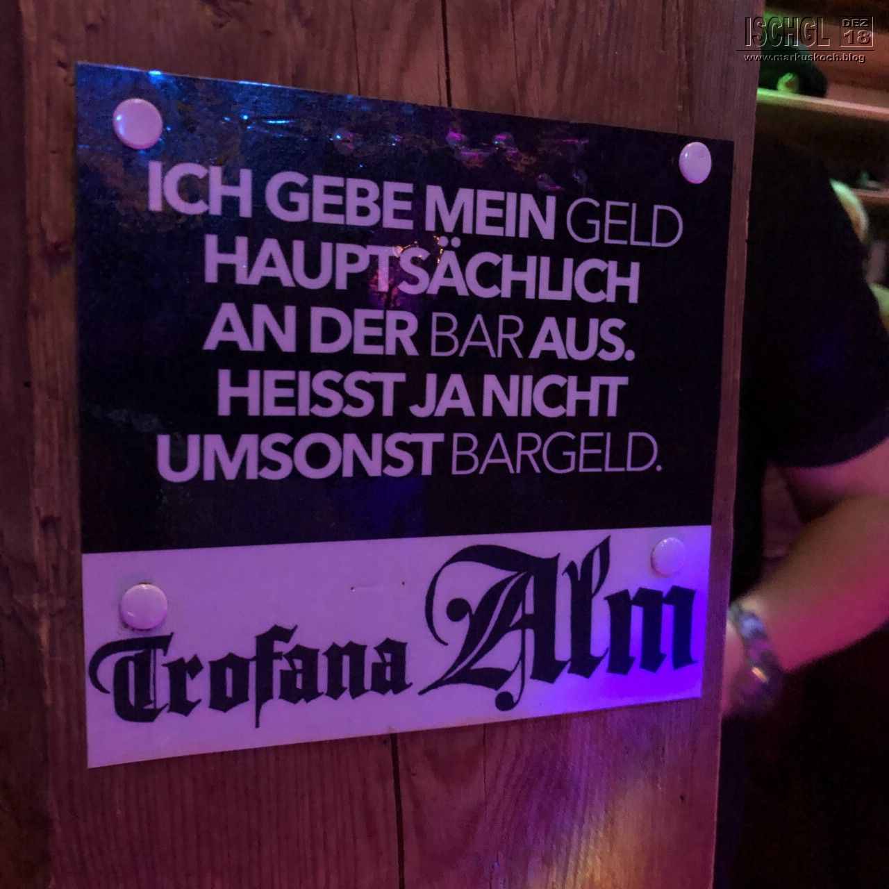 Abends waren wir noch in der Trofana Alm, Champagnerhütte und Kuhstall. Aber übertrieben haben wir nicht.