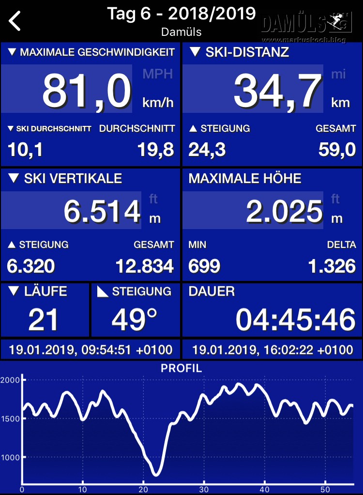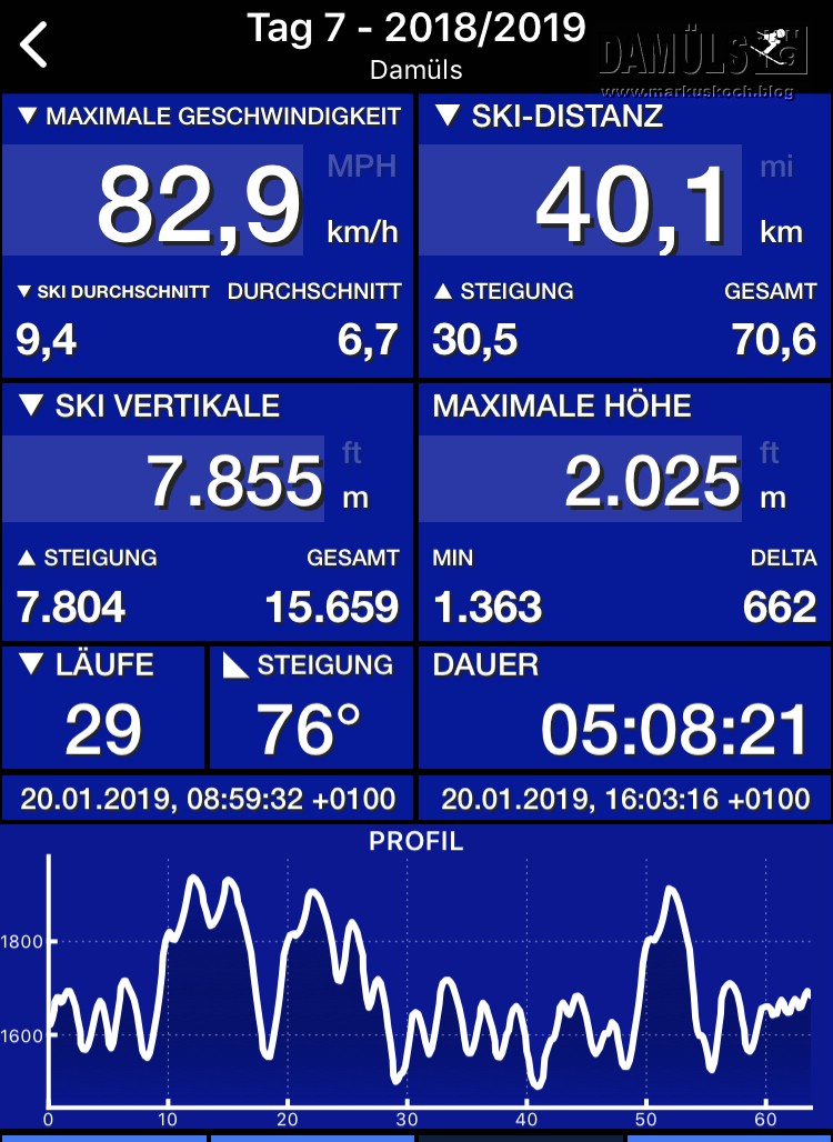 So, 20.01. – Damüls – Wetter: bewölkt, ca. – 7°C