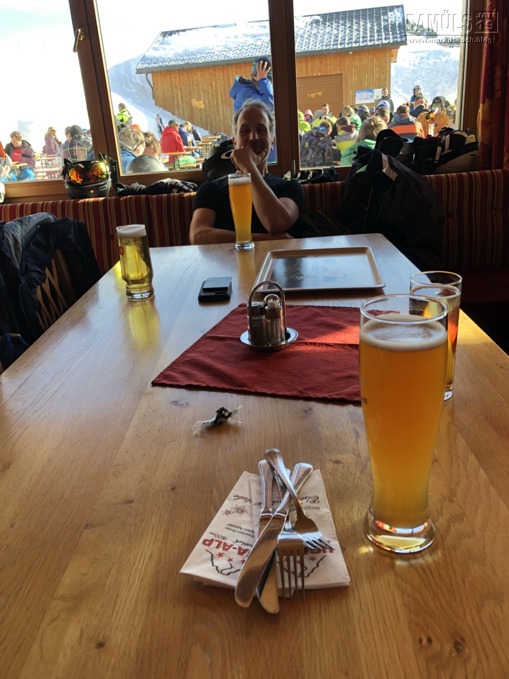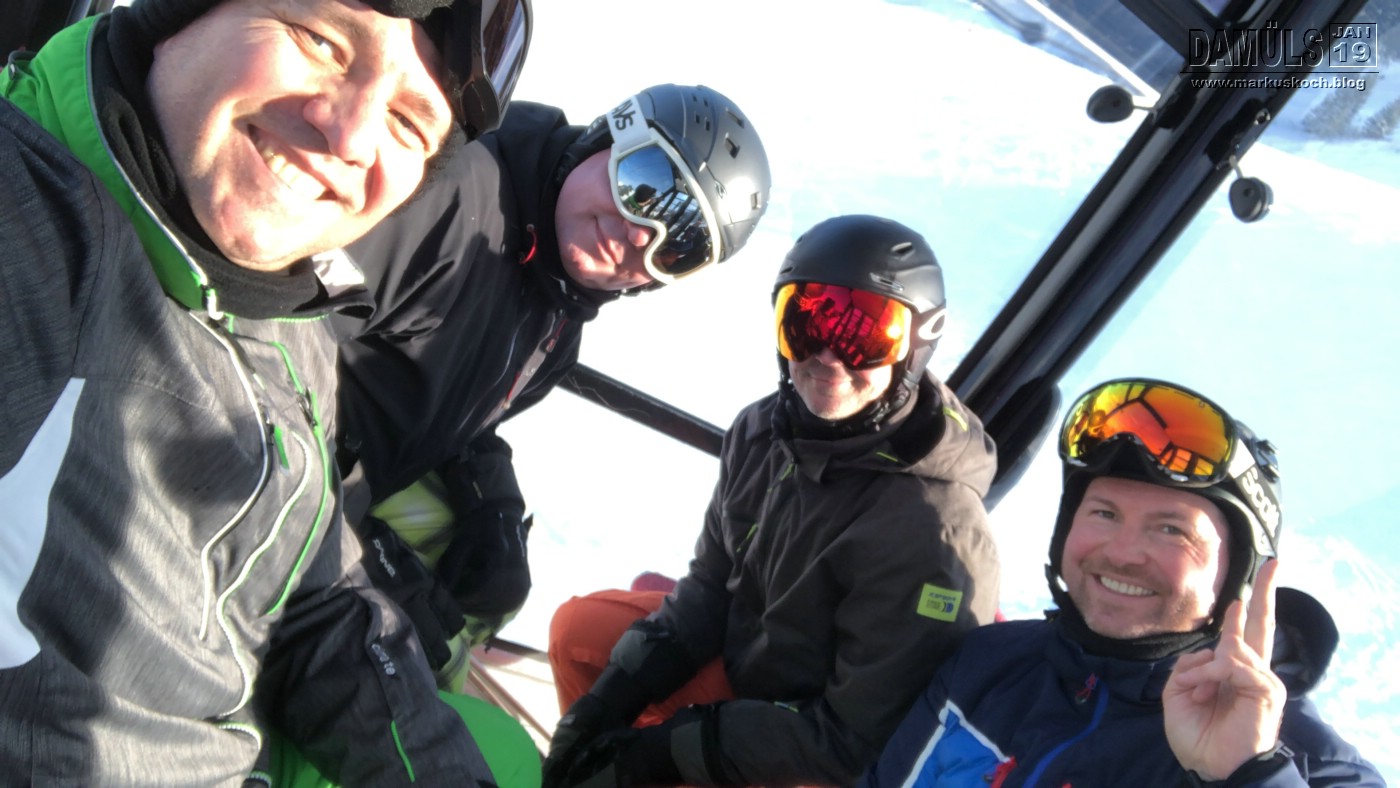 Dabei waren Udo, Michael, Ralf & ich. Wie schon 2015 waren wir zufällig wieder im gleichen Berghotel Sonnenalm direkt an der Piste am Lift Furka auf 1.700 Hm.