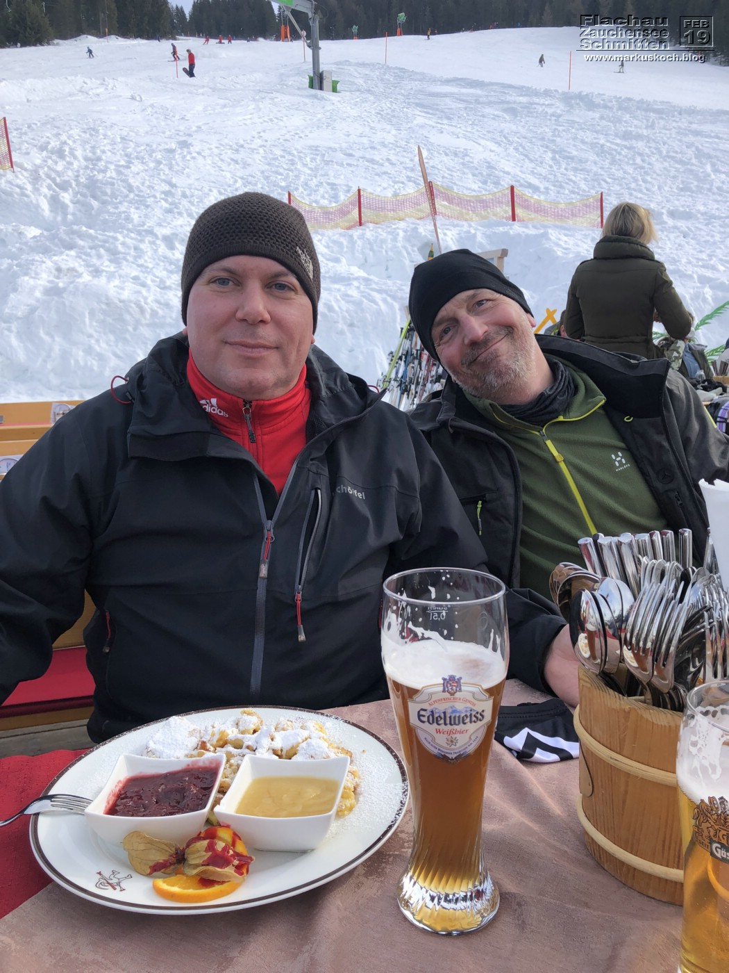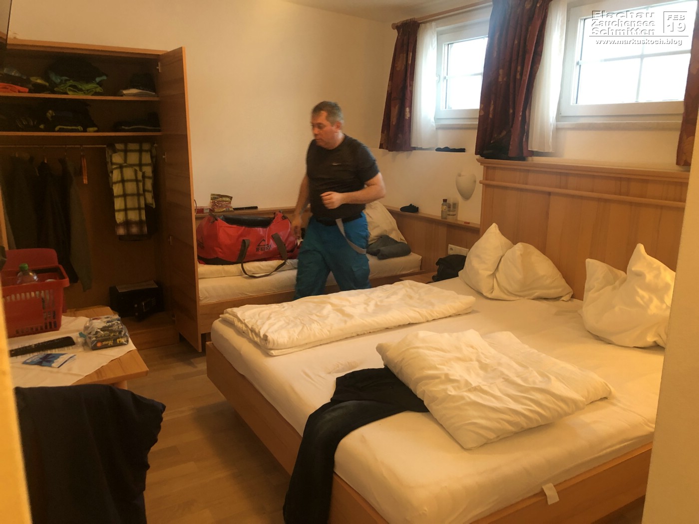 Anschließend fuhren wir ab zum Berggasthof, Check-In, Dusche, Abendessen. War alles Perfekt dort. Ins Tal für späteren Apres-Ski konnte man nur mit dem Taxi (s.FR) bzw. mit Ski 😉