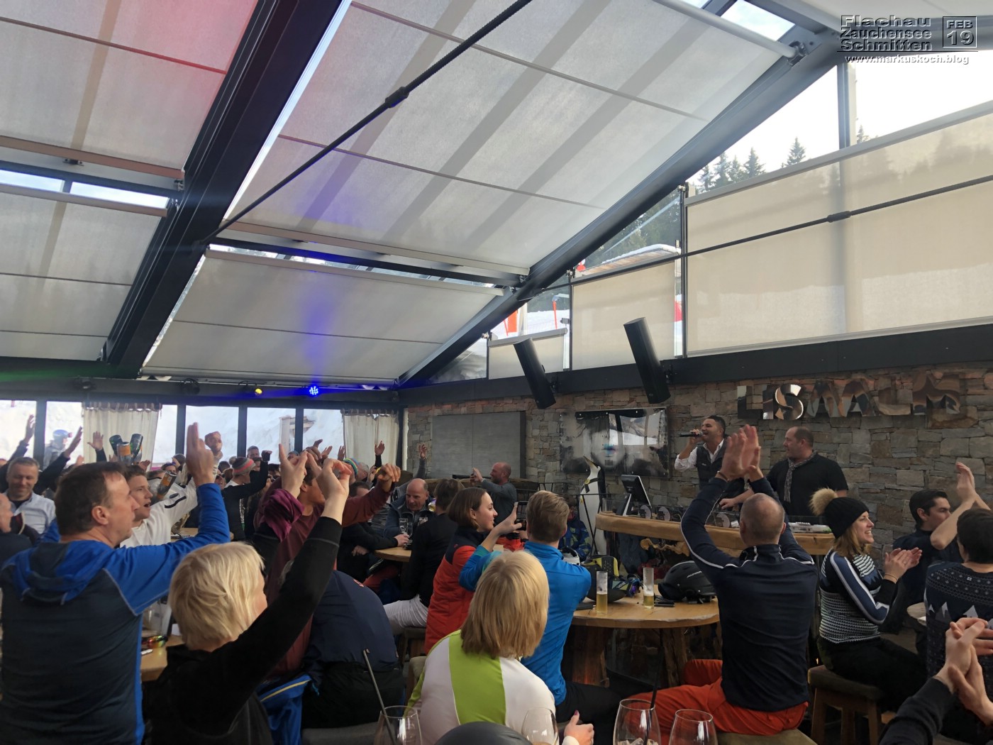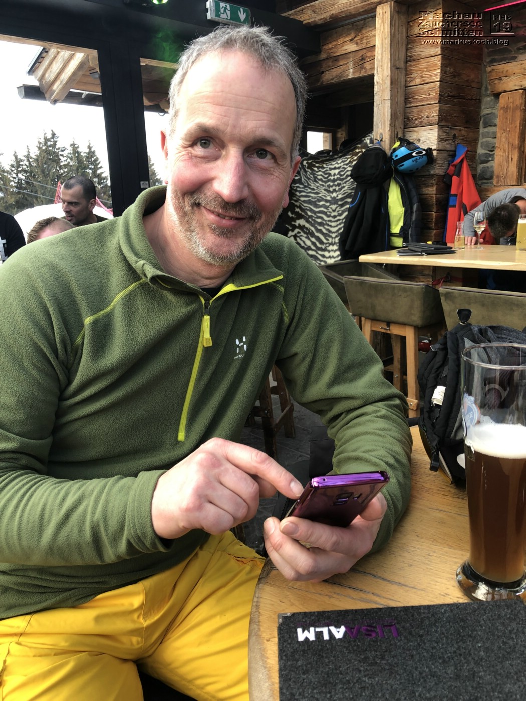 Ein wenig oberhalb unserer Unterkunft ist die Lisaalm, jeden Tag mit Live-DJ (housig 😊) – sozusagen unsere Apres-Ski-Alm. Aber super klasse: meine Ski-Stöcke wurden geklaut. Kurzerhand musste ich halt neue besorgen.