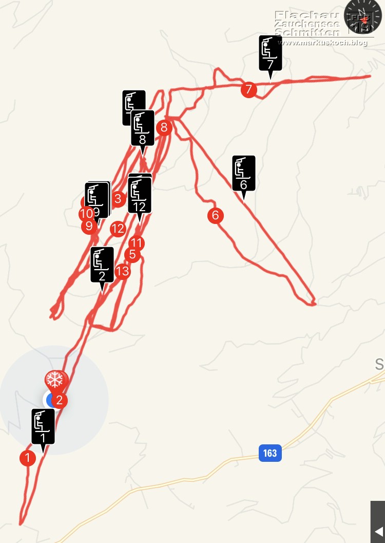 Nachdem die Wolkendecke durchbrochen war, schien die Sonne nur für uns… zumindest für die ersten zwei Stunden, bevor wieder viele andere auf den Pisten waren. Aber es ging, da SA nicht so viele Skischulen unterwegs waren.