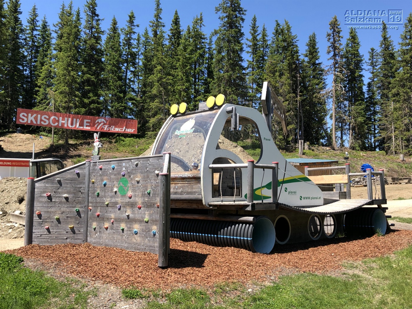Anschließend fuhren wir wieder nach Schladming, um mit der Gondel Planai West zum Hopsiland zu gelangen. Die Haupt-Gondel wird erneuert und so mussten wir mit dem Bus ein Stückchen fahren.