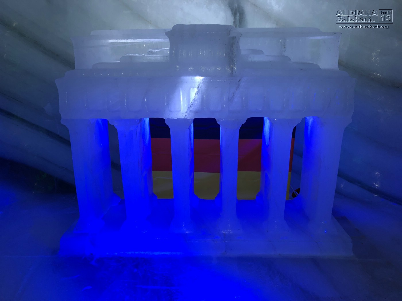 Dort oben war es herrlich luftig mit einem super Ausblick. Über eine Hängebrücke besichtigten wir unter dem Steinmassiv einen Eispalast mit der Ausstellung „Europa“ – aus Eis gefertigte Wahrzeichen, wie Berliner Mauer, Eifelturm oder Prater Riesenrad Wiens.