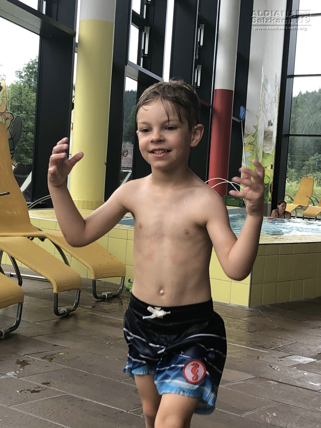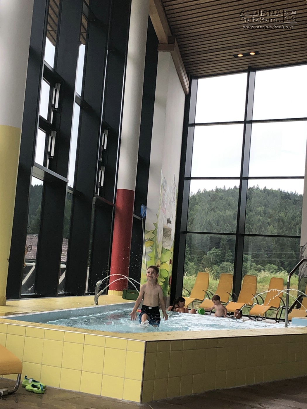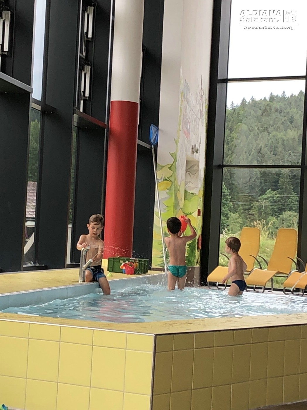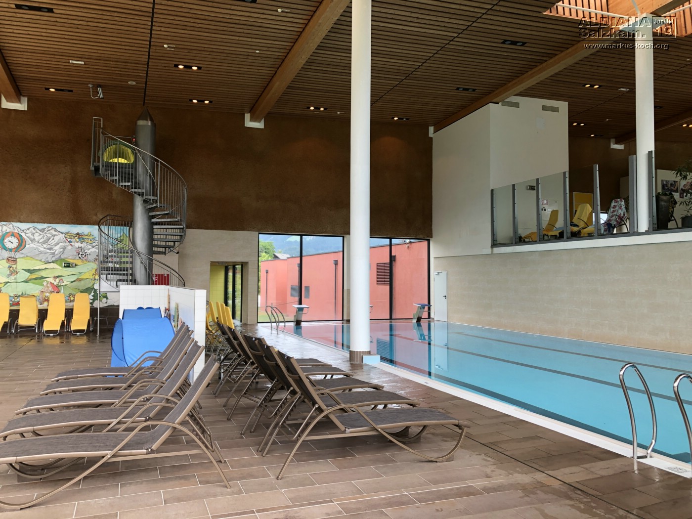 Da für heute das Wetter dann doch mal wirklich schlecht gemeldet war, gingen wir mit unseren Bademänteln durch den Keller zur angeschlossenen Grimming Therme (ist im Preis dabei, so oft & so lange man möchte).  Dort konnten wir rutschen, schwimmen, springen und chillen.