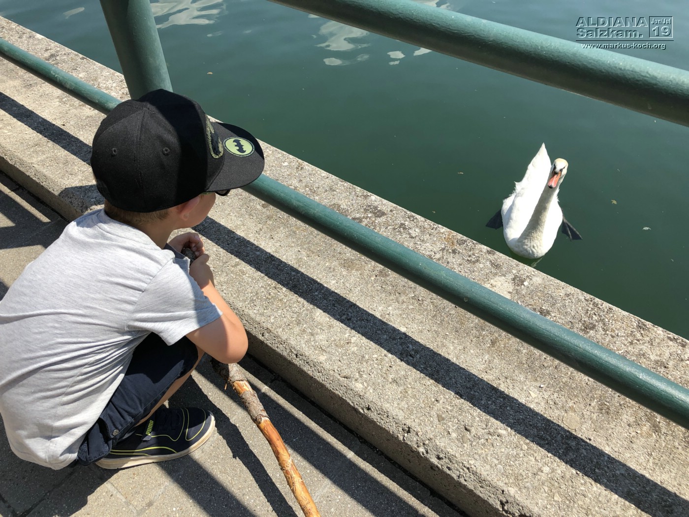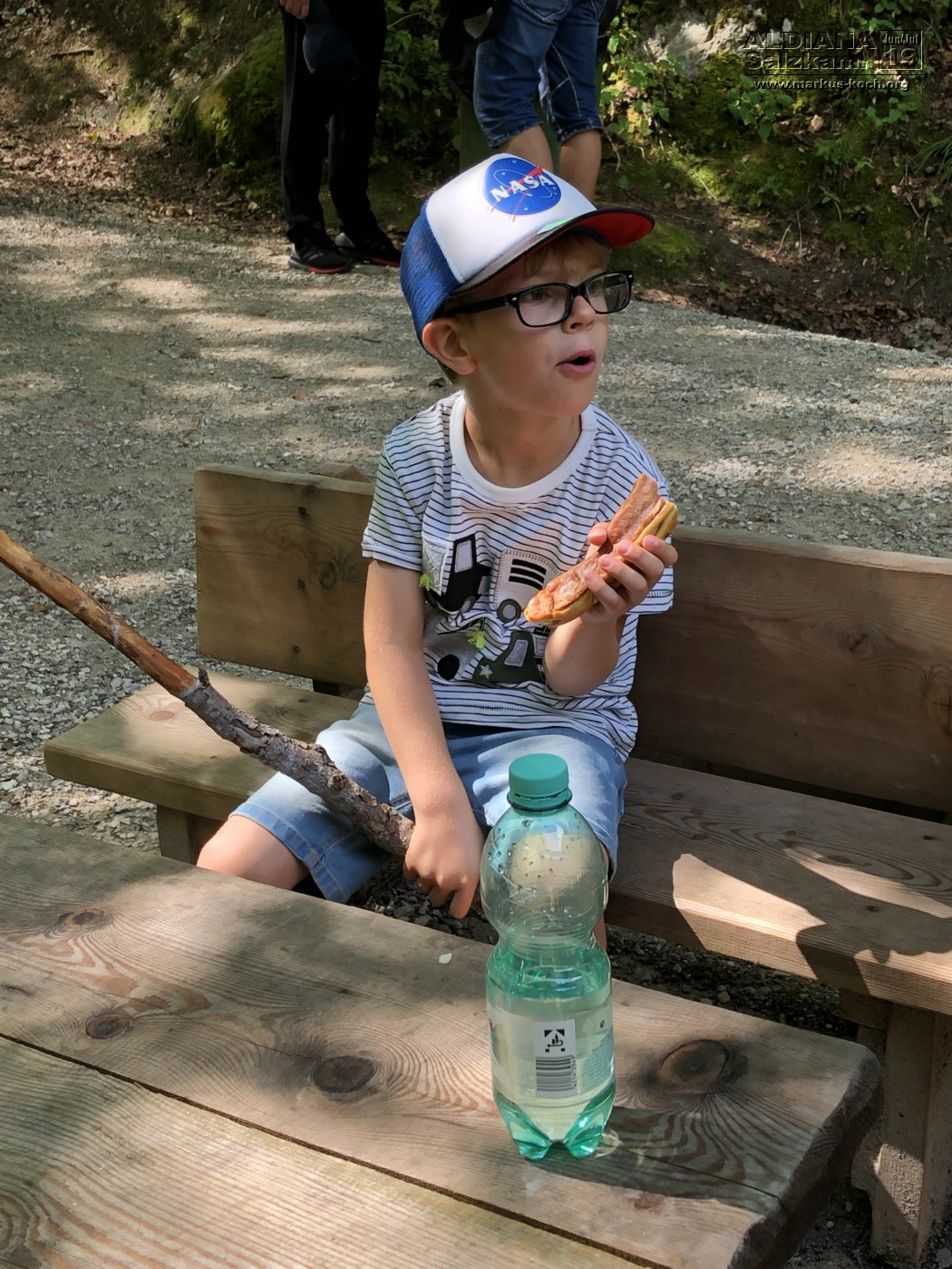 Gleich nach dem Frühstück machten wir uns auf zum Steirischen Bodensee, wo wir letztes Jahr auch schon waren. Nur dieses Mal hatten wir das Fahrrad dabei und Luca fuhr den Weg zum See und dann bis zum Ende davon. Dort stellten wir das Fahrrad ab und wanderten zu einem Wasserfall. Er hat toll durch Stock & Stein mitgemacht. Wichtig war ihm, einen Stock zu finden 😉