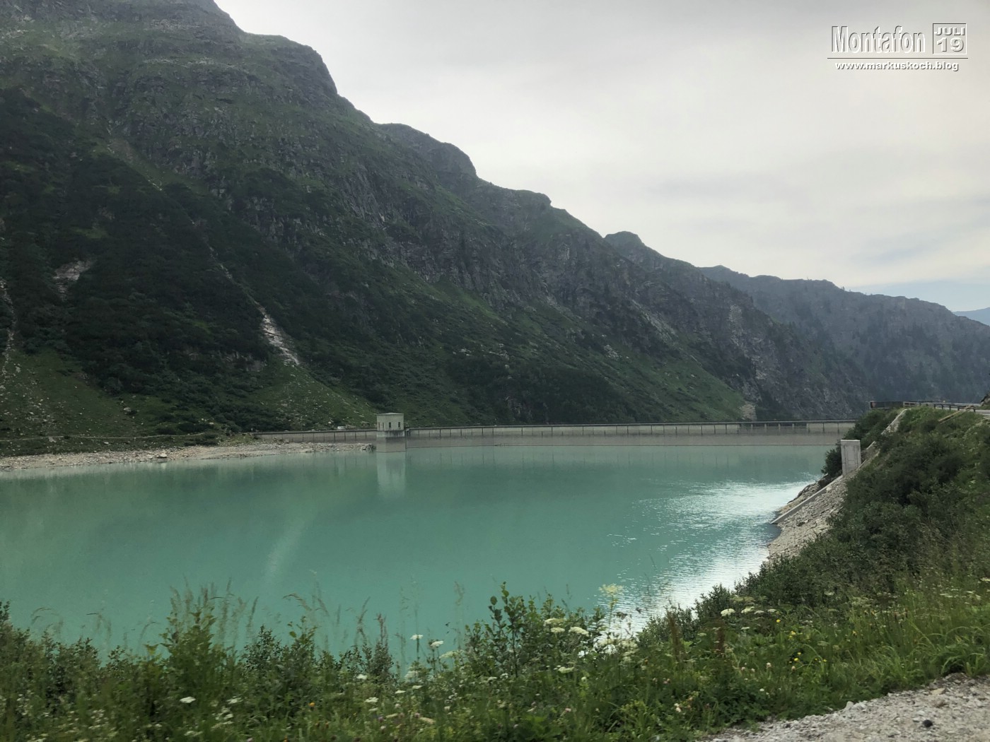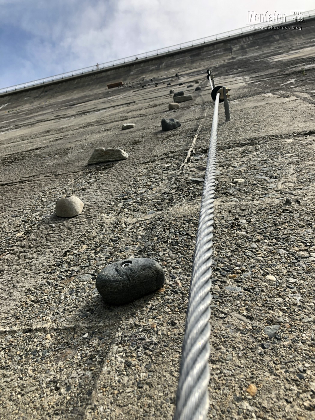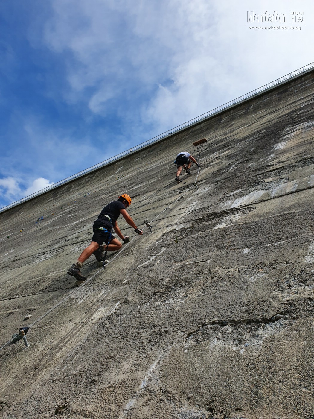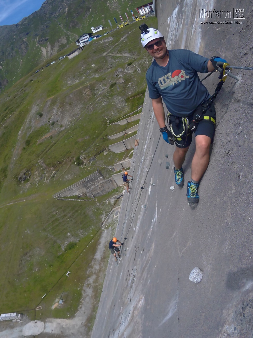 Deshalb entschieden wir einen weiteren leichten KS anzufahren. Es ging über wunderschöne Silvretta Hochalpenstraße zum gleichnamigen Stausee. Nach einer Trinkpause an einer Alpe direkt unterhalb, ging es an die Mauer des Stausees. Der Silvretta Stausee KS wurde ganz neu eröffnet. Mit zwei Bänken zum Ausruhen, 3 Seilteilstücke und einem Pendel. Es hat enorm viel Spaß gemacht, 50-60 m über dem Boden an einer Stauseemauer zu klettersteigen.
