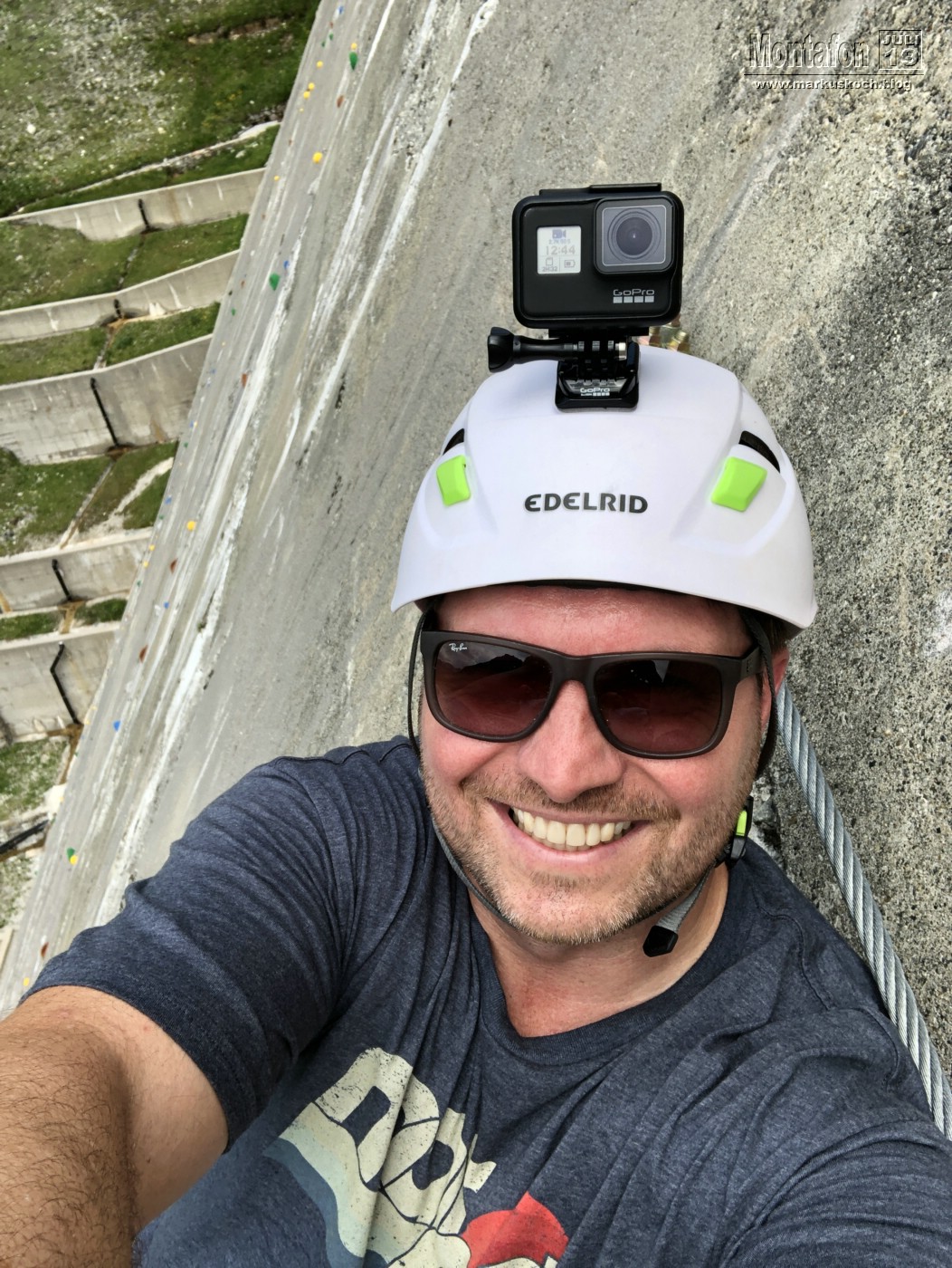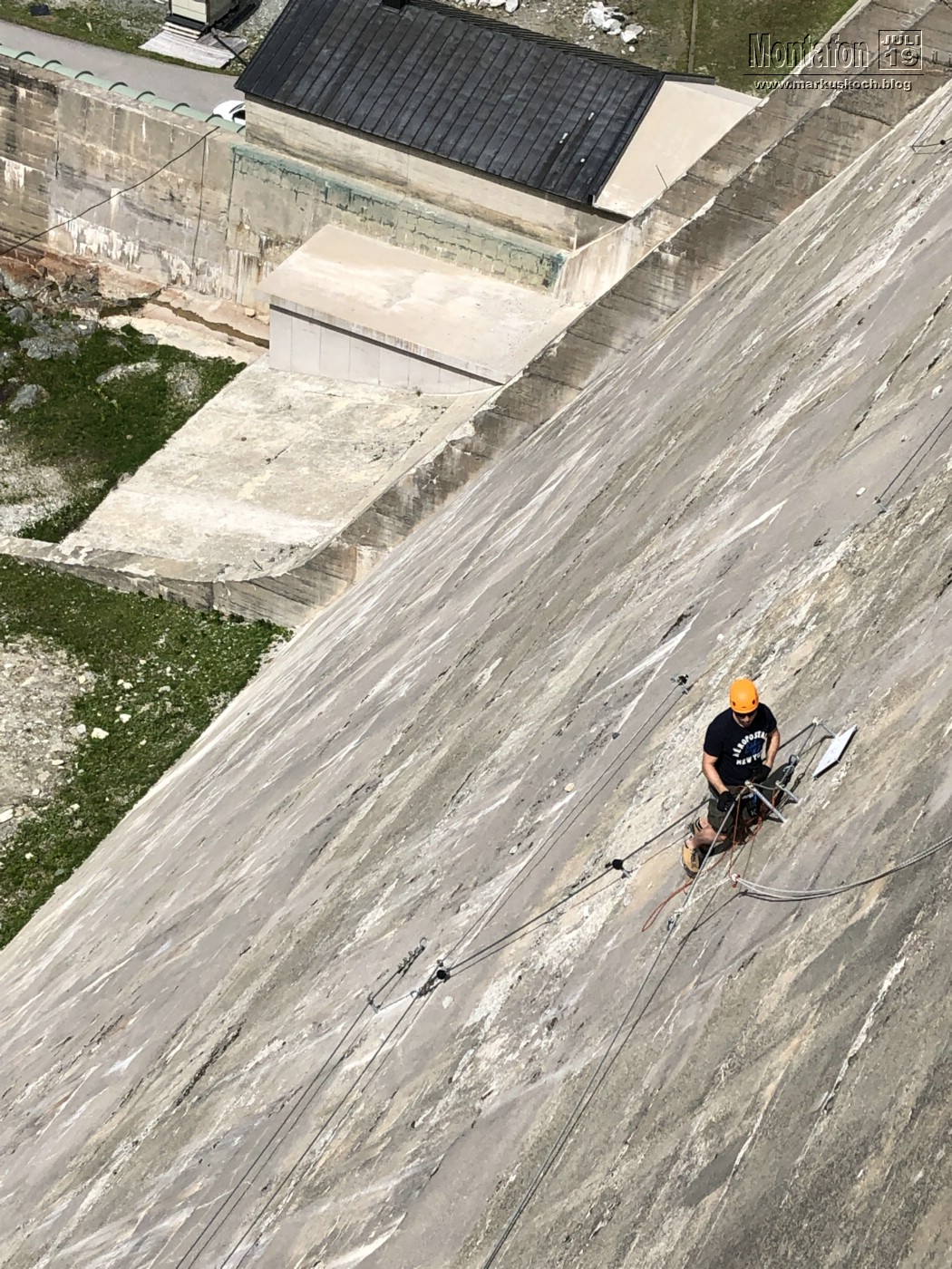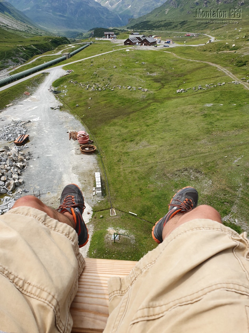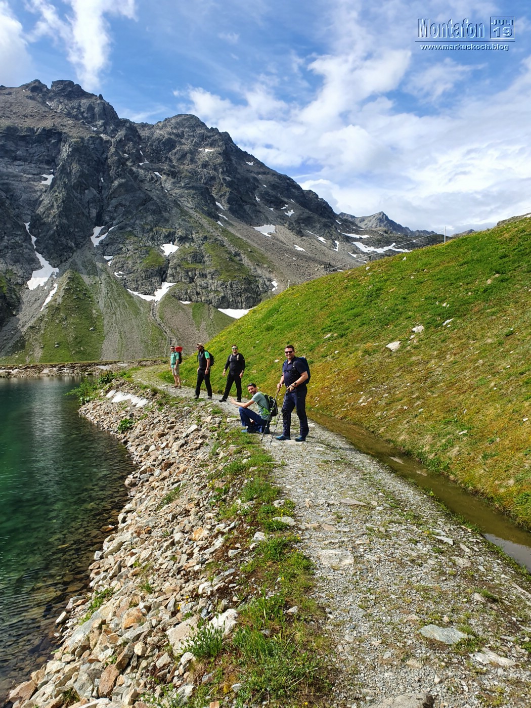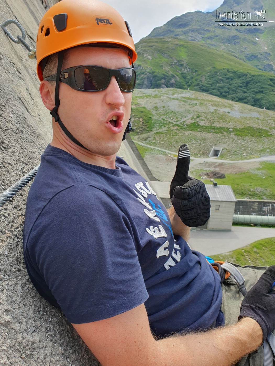 Deshalb entschieden wir einen weiteren leichten KS anzufahren. Es ging über wunderschöne Silvretta Hochalpenstraße zum gleichnamigen Stausee. Nach einer Trinkpause an einer Alpe direkt unterhalb, ging es an die Mauer des Stausees. Der Silvretta Stausee KS wurde ganz neu eröffnet. Mit zwei Bänken zum Ausruhen, 3 Seilteilstücke und einem Pendel. Es hat enorm viel Spaß gemacht, 50-60 m über dem Boden an einer Stauseemauer zu klettersteigen.