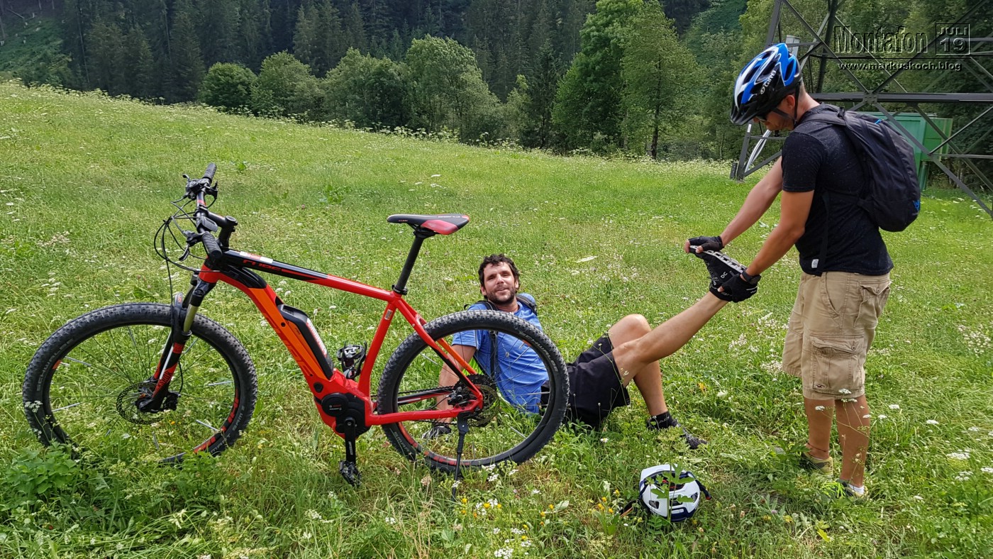 Fazit zum E-MTB: Cool! Gerade für mich als eher seltener Radfahrer war es mit der E-Unterstützung zu schaffen, musste aber dennoch ganz schön in die Pedale treten und habe ganz schön geschwitzt. Den Berg abzufahren war eine super Belohnung, auch wenn man auch hier ins Schwitzen kam.