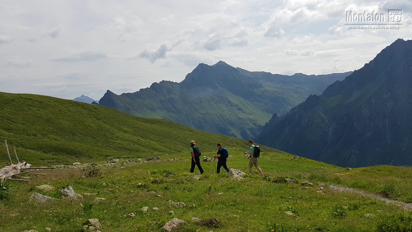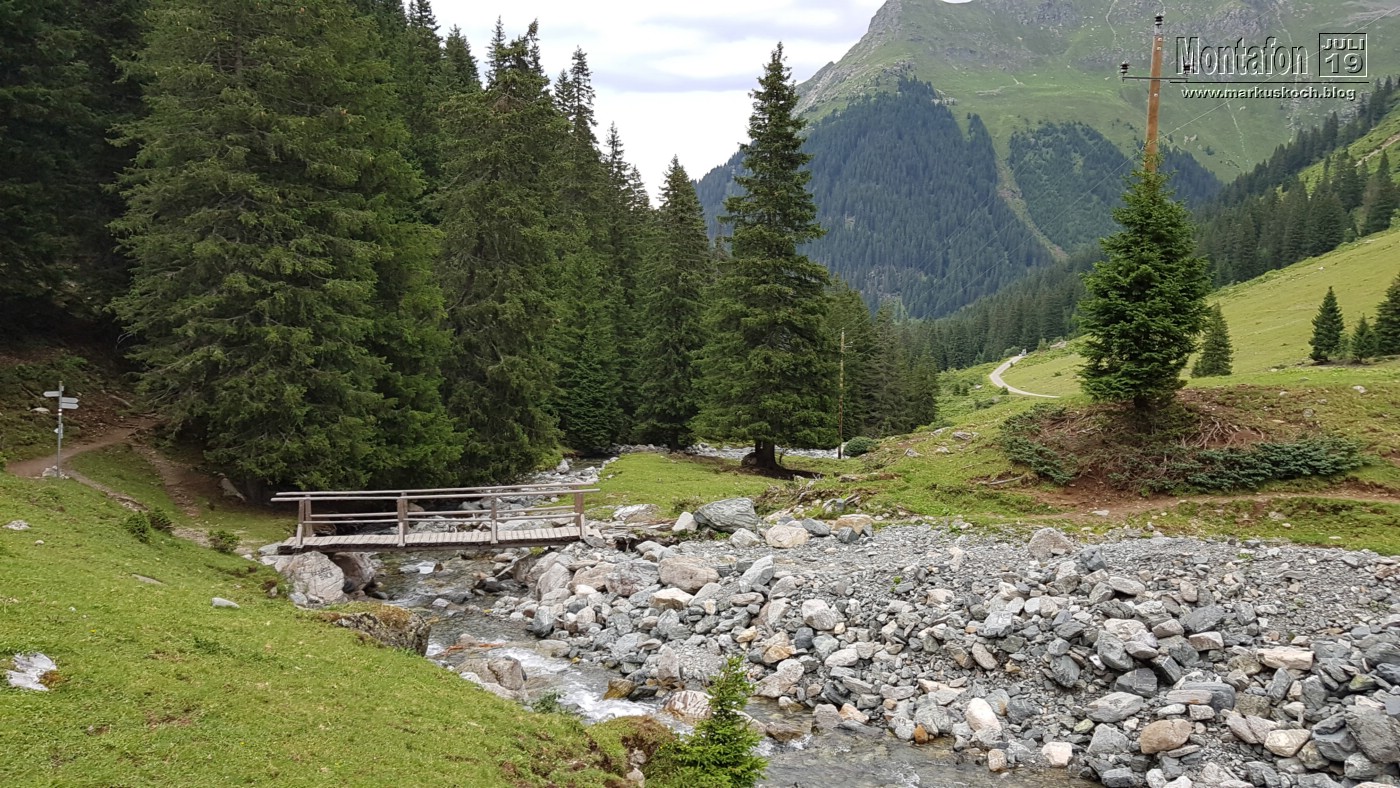Zunächst ging es mit der von der FeWo 400 m entfernten Gargellen Gondel zur Bergstation. Weiter zu einem kleinen künstlichen Wasserspeicher um dann ins Tal zu wandern. Zwischendurch hat es immer wieder mal geregnet, aber war ganz angenehm. Unterwegs rasteten wir an einer Hütte (Obwaldhütte) wo wir die schlechtesten Suppen bzw. Kässpatzn EVER gegessen hatten. Es hat nach NIX geschmeckt und die Bedienung war dazu unfreundlich. Ohne Worte! Wer das liest, meidet künftig beim Skifahren oder Wandern lieber diese Hütte!