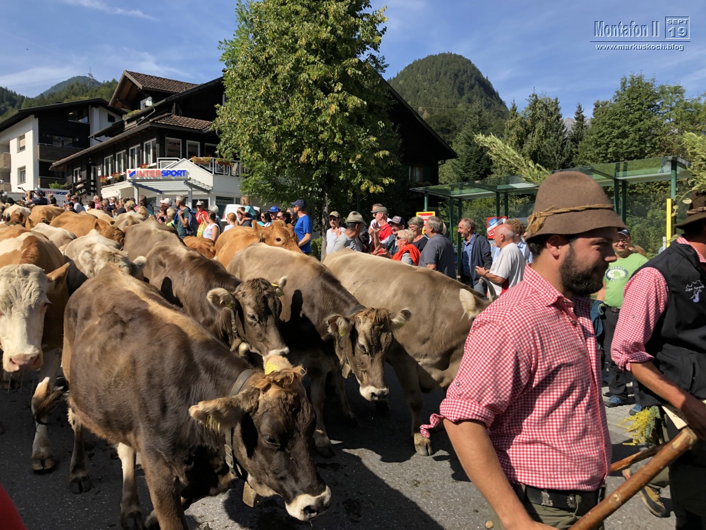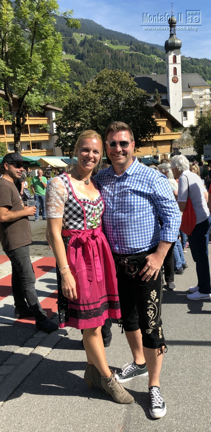 Am Vormittag waren wir zum Almabtrieb in Tschagguns. Die Alpen haben ihre Kühe – durchweg nur leicht geschmückt – ins Tal getrieben. Deswegen waren wir wohl auch fast die Einzigsten in Tracht.