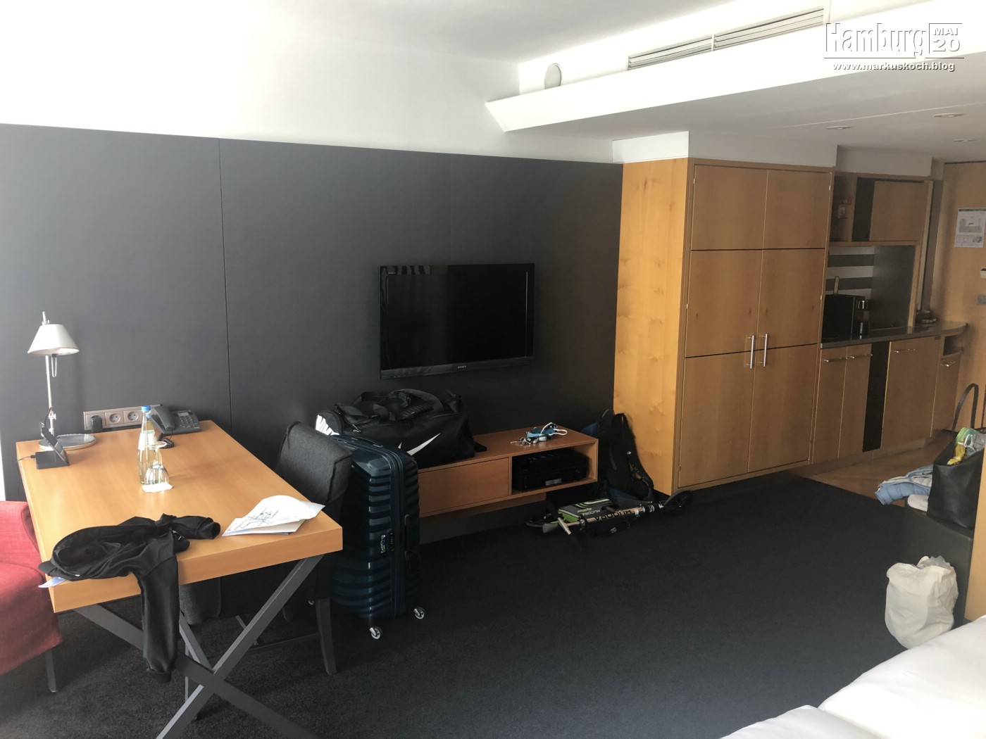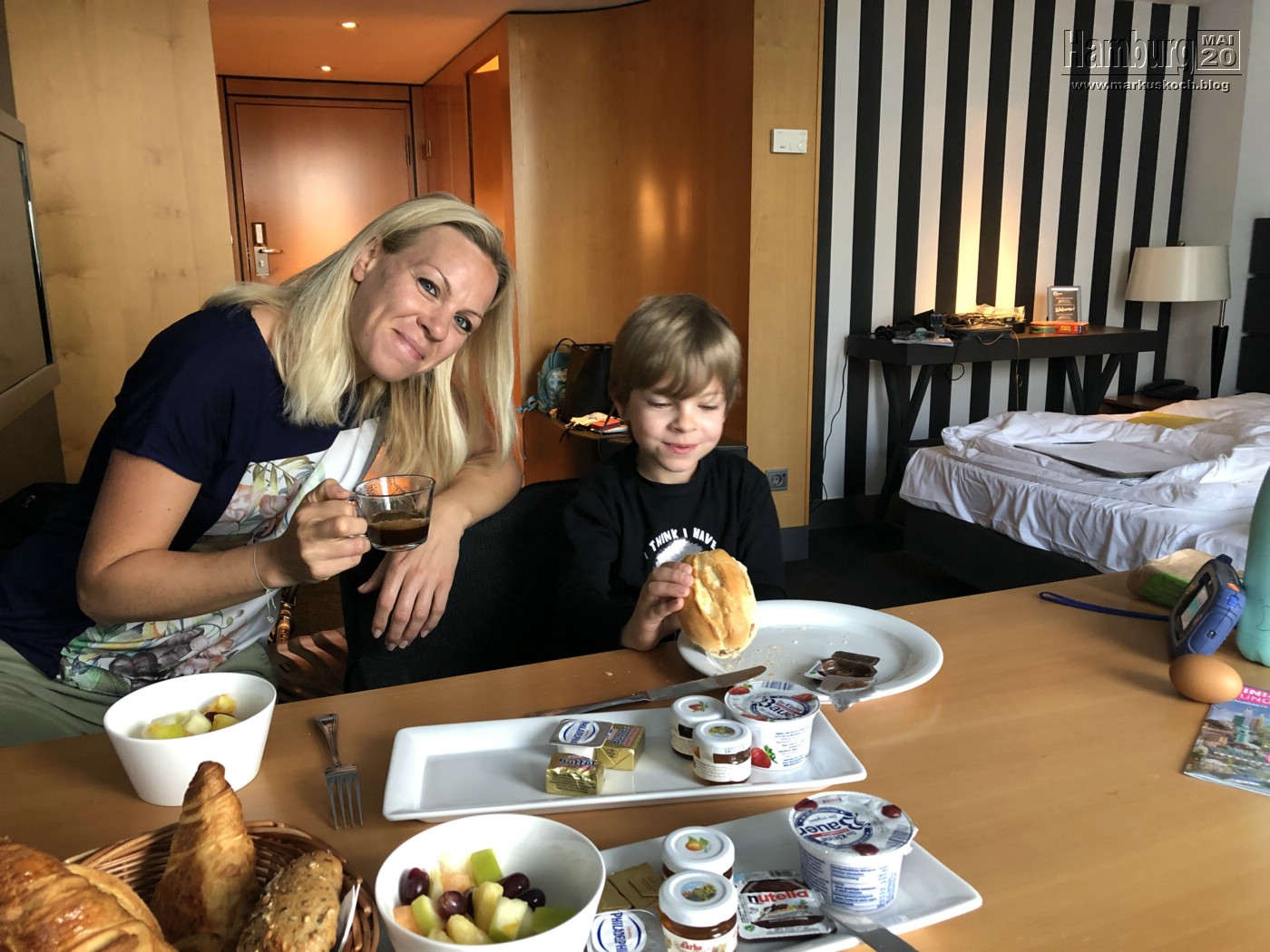 Untergebracht waren wir im Madison Hotel – sehr zentral, direkt unterhalb des Michels. Das Hotel war super und wir hatten ein tolles Zimmer mit Extrabett für Luca und Blick auf die Elbphilharmonie.