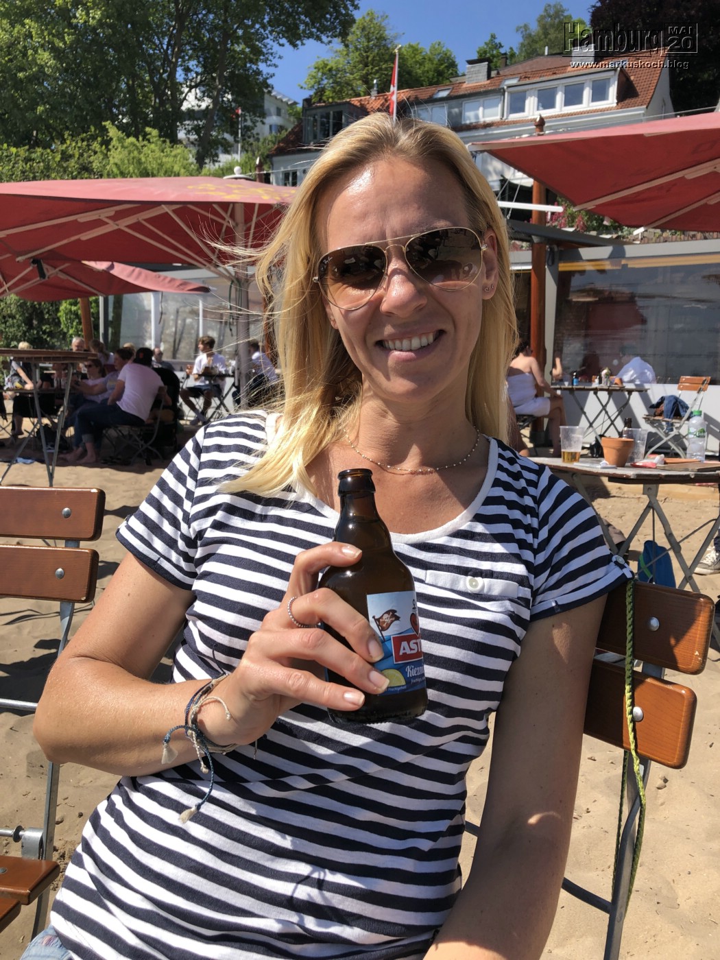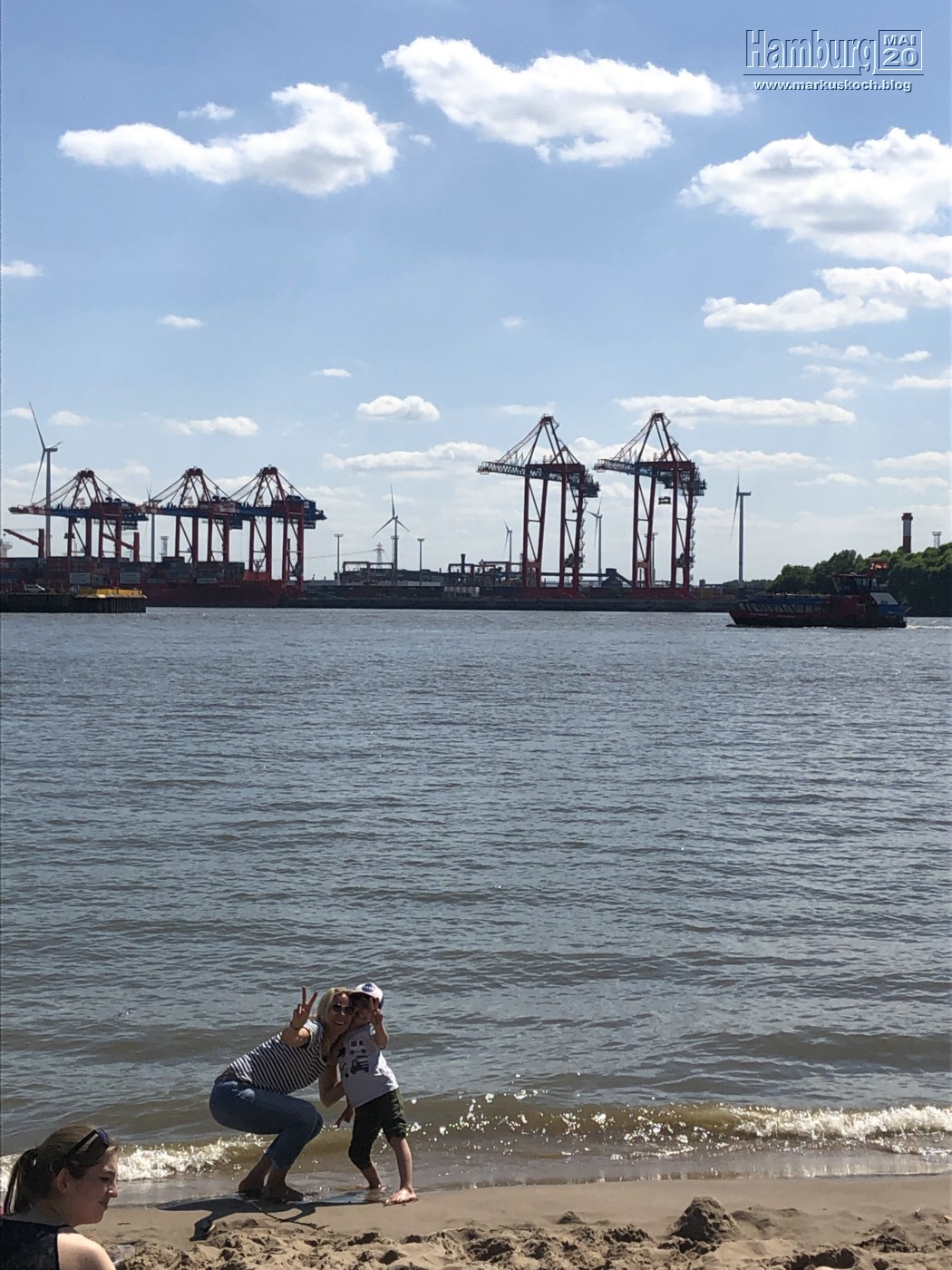 Das Wetter bot sich natürlich auch an bei ca. 24°C und Sonnenschein. Zum Elbstrand bzw. der Strandperle fuhren wir mit der Fährlinie 63 auf der Elbe.