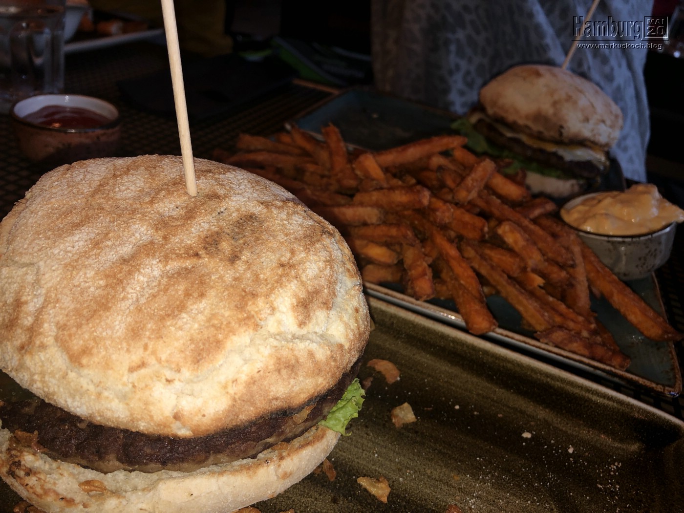 Abendessen in einem leckeren Burgerladen Peter Pane an der Haltestelle Schlump.