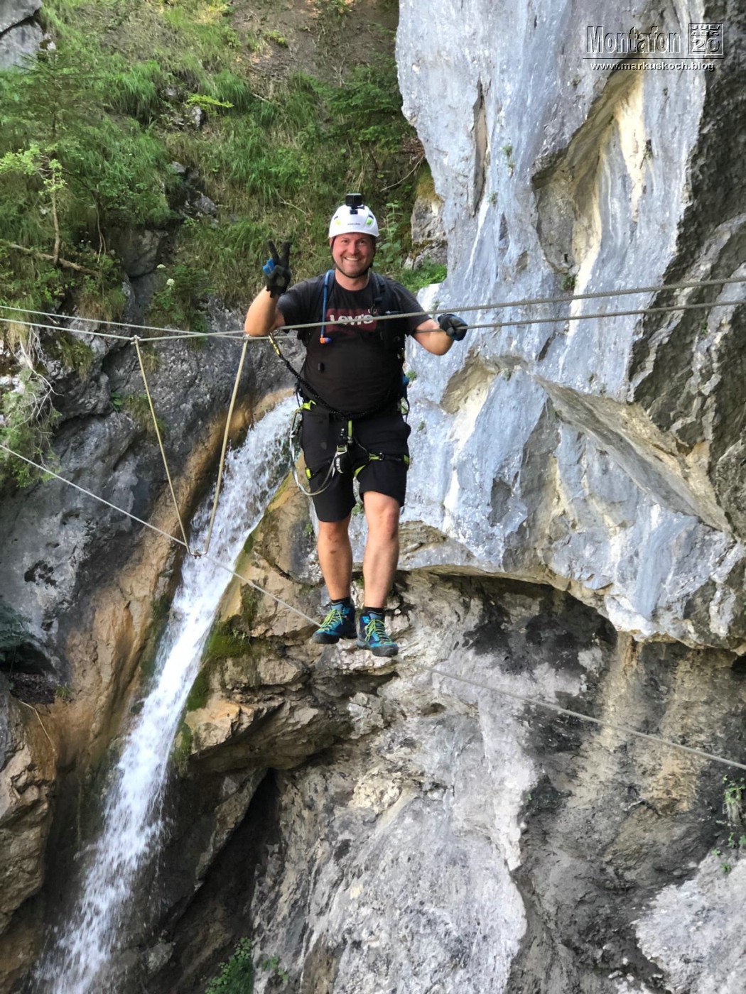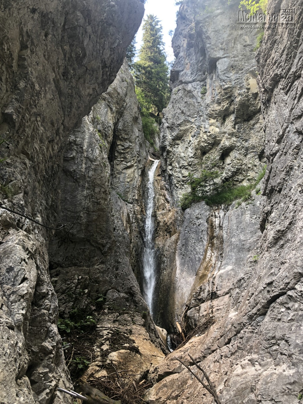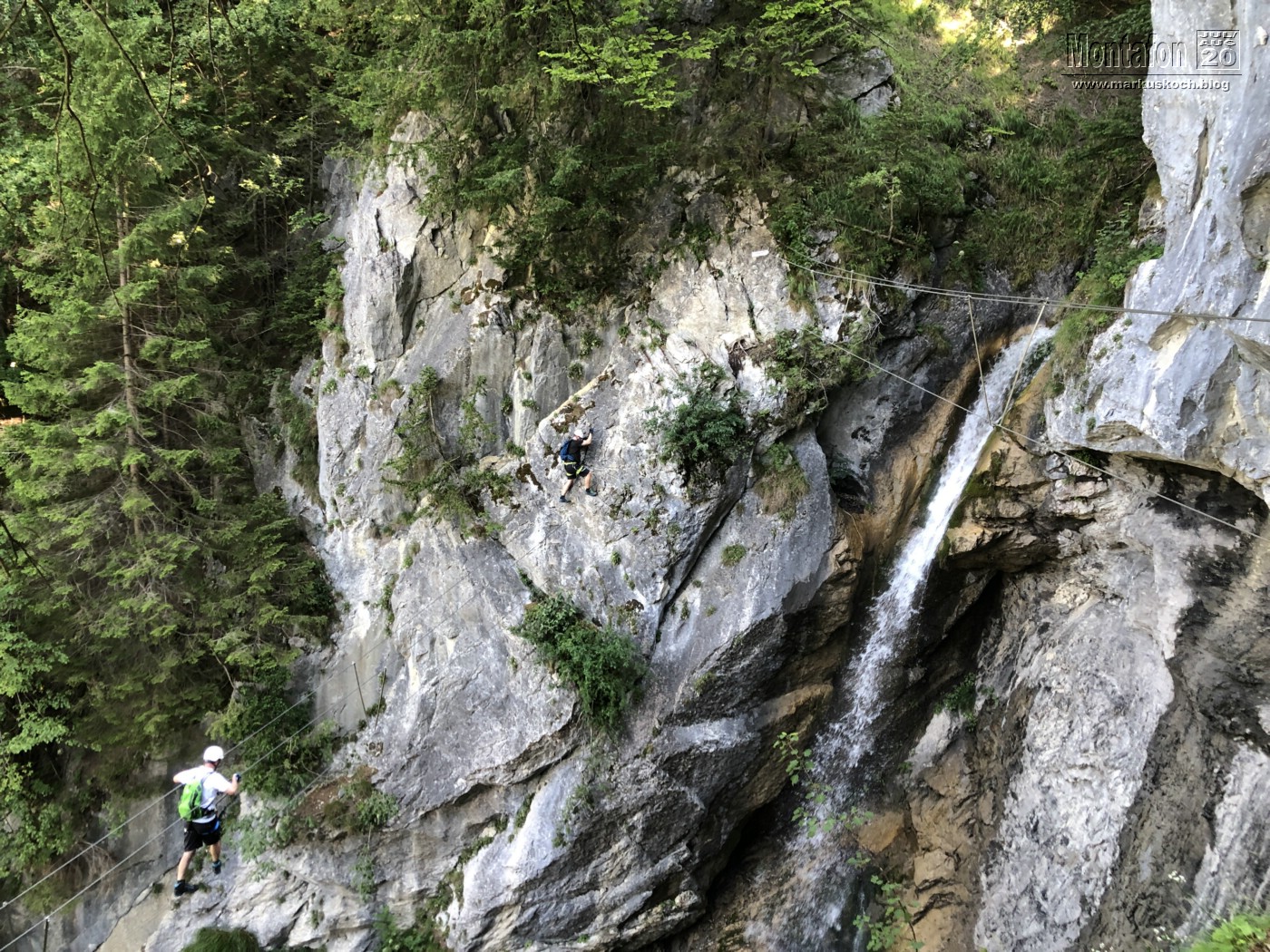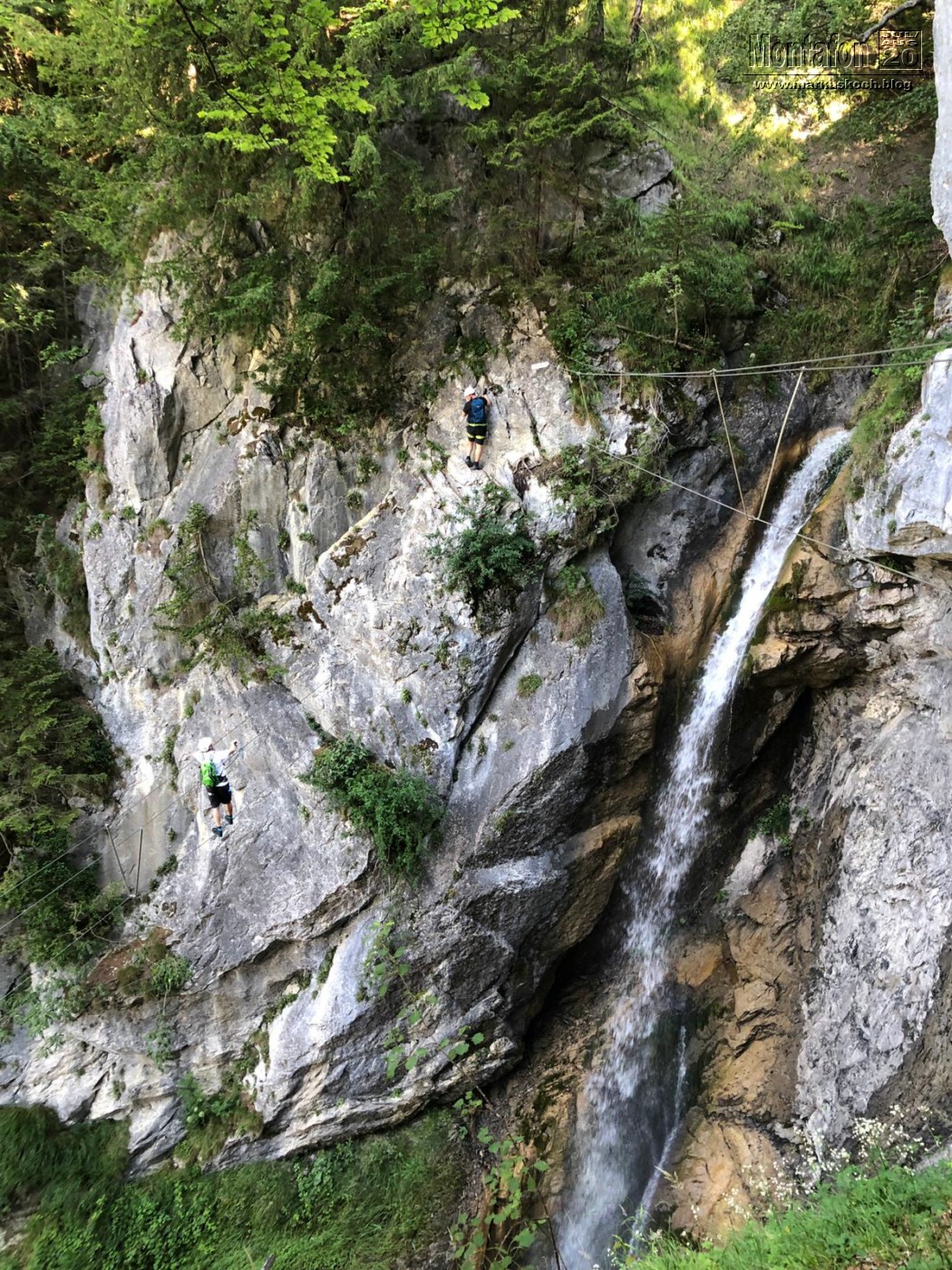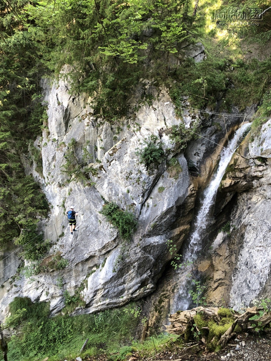 Gleich am Beginn des Montafon-Tals machten wir Frühs den Wasserfall KS in St. Anton (Montafon) mit 190 Hm. Ein schöner Steig, nicht zu schwer, aber trotzdem mit ein paar kniffeligen Stellen. Cool waren die 2 Seilbrücken fast über den Wasserfall drüber.