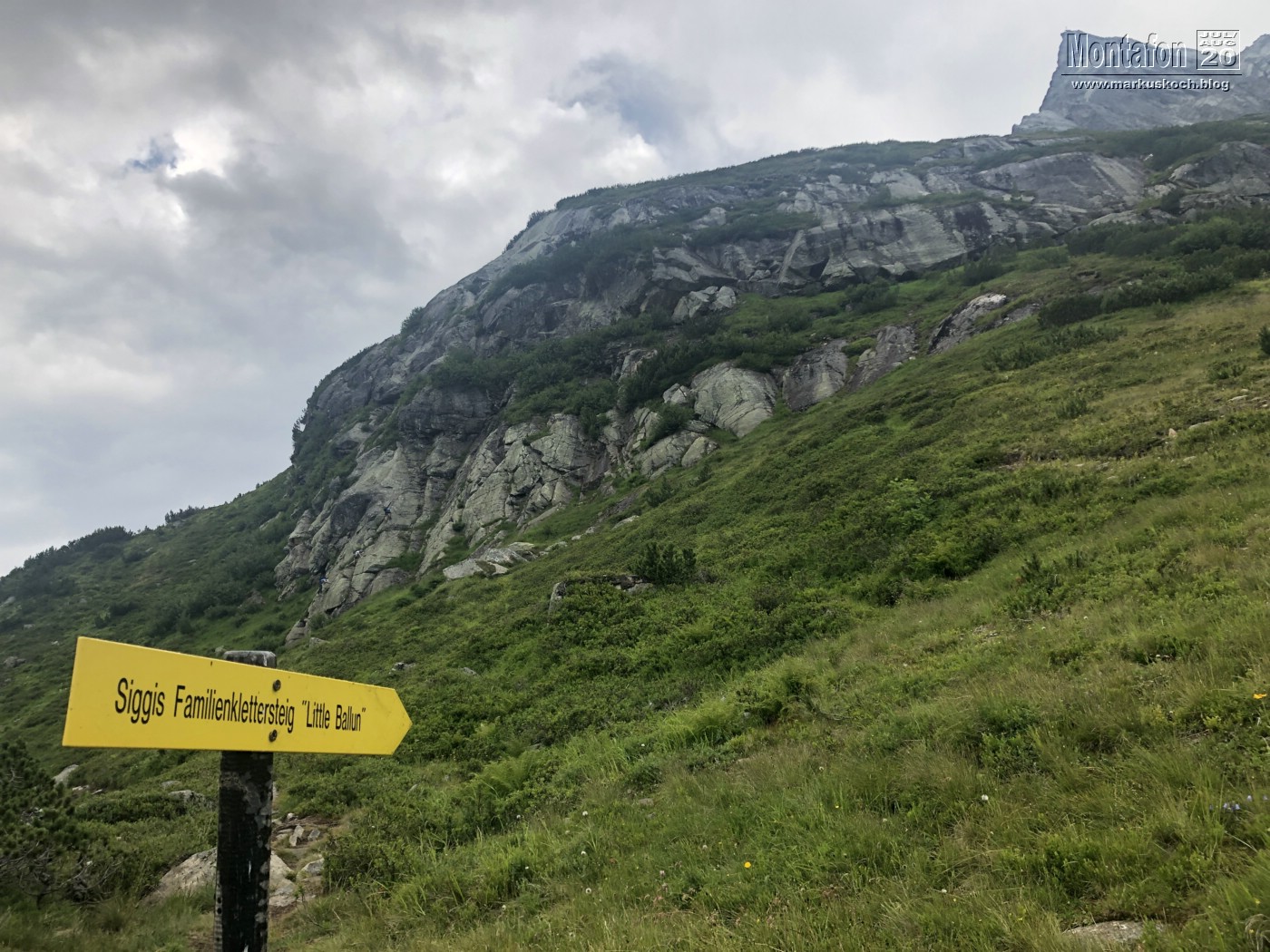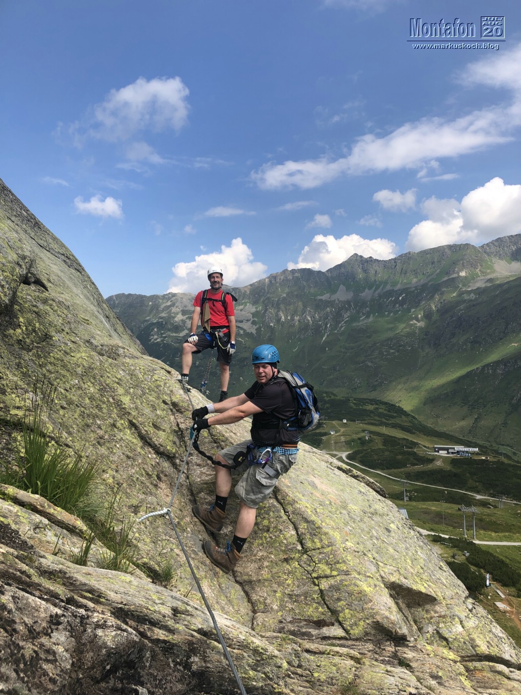 Nach dem Frühstück ging es über die Silvretta Hochalpenstraße bis nach Wirl – Galtür. Von dort mit der Alpkogelbahn hinauf und noch ca. 30 Min bis zum Little Ballun KS. Ausgerechnet kurz vorm Steig fing es an zu regnen für ca. 10 Minuten. Zunächst dachten wir an Abbruch, aber die nachfolgende Sonne trocknete den kurzen Regenschauer schnell aus.