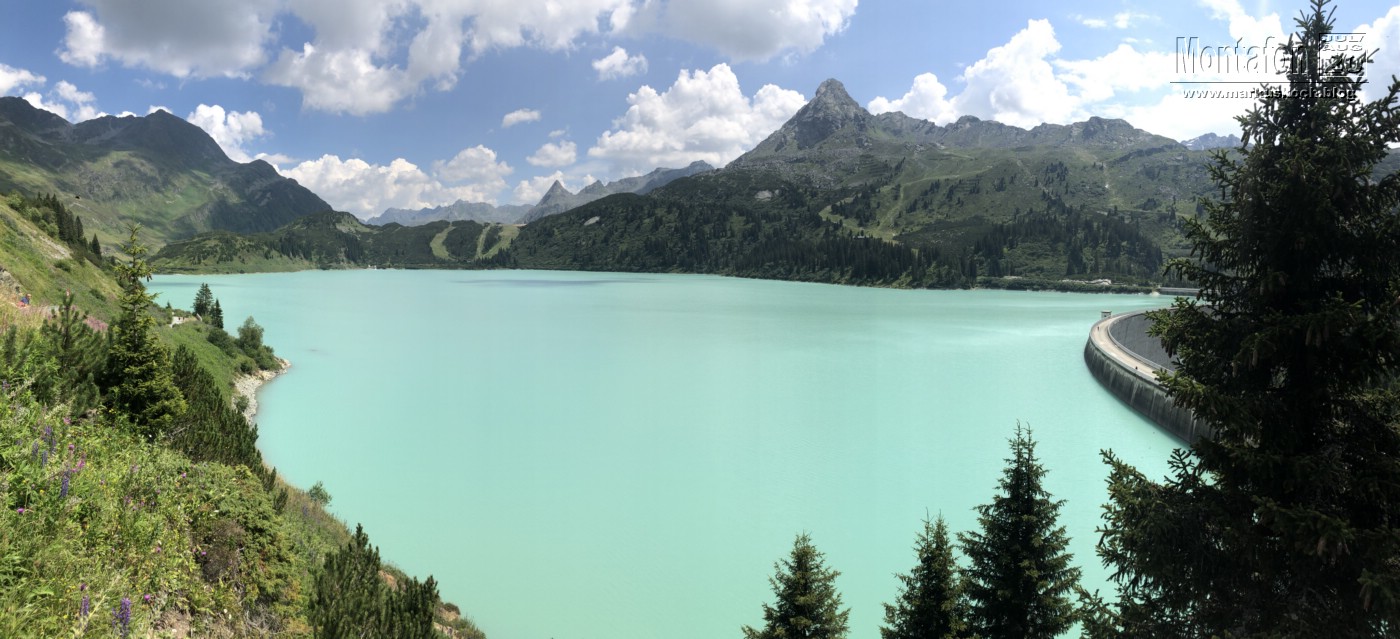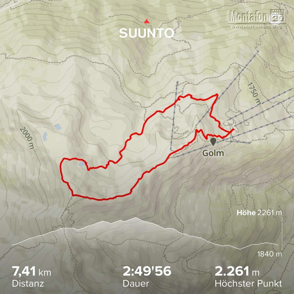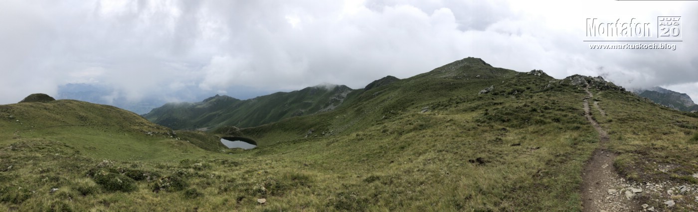 Mit skeptischem Blick aufs Wetter suchten wir uns noch eine Wanderung raus. Mit der Bergbahn zur Bergstation Golm und von dort für 7 km fast ausschließlich auf einem Grat entlang den Golmer Seenweg. Durch die fast 550 Hm war es trotz kühlerem Wetter teils ganz schön schweißtreibend.